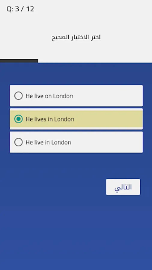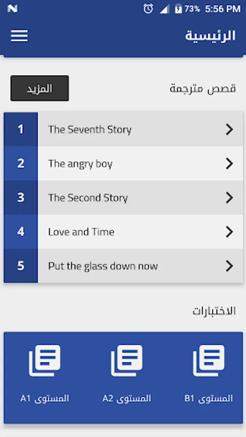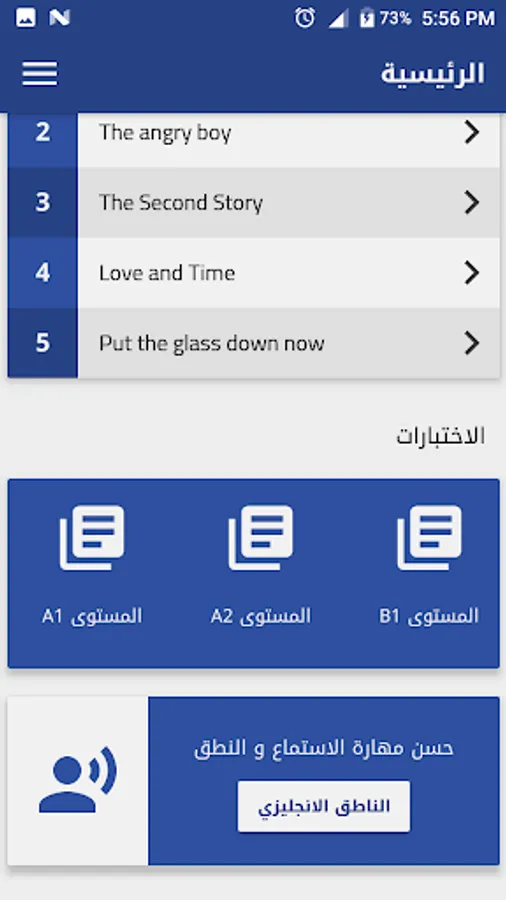 The application contains a special interface for English language tests so that it contains more than 5 tests from the beginner to the advanced level, English tests according to the levels as follows: