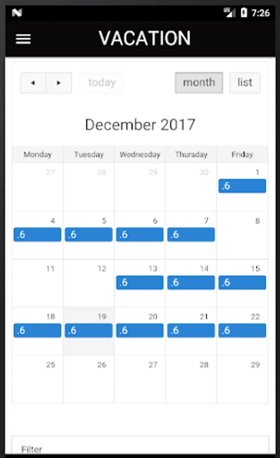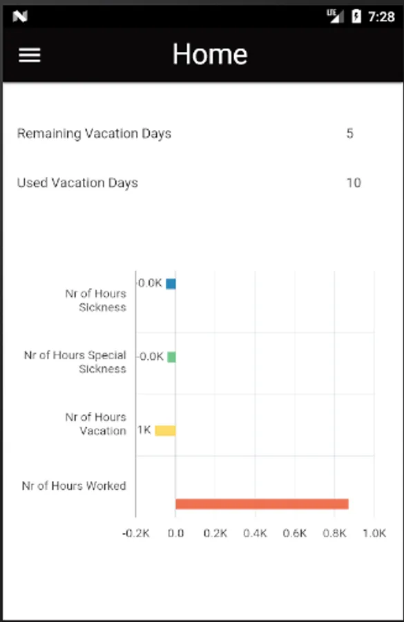 Users can view the details of their work, holiday and vacation imported by staff and calculated by the program itself