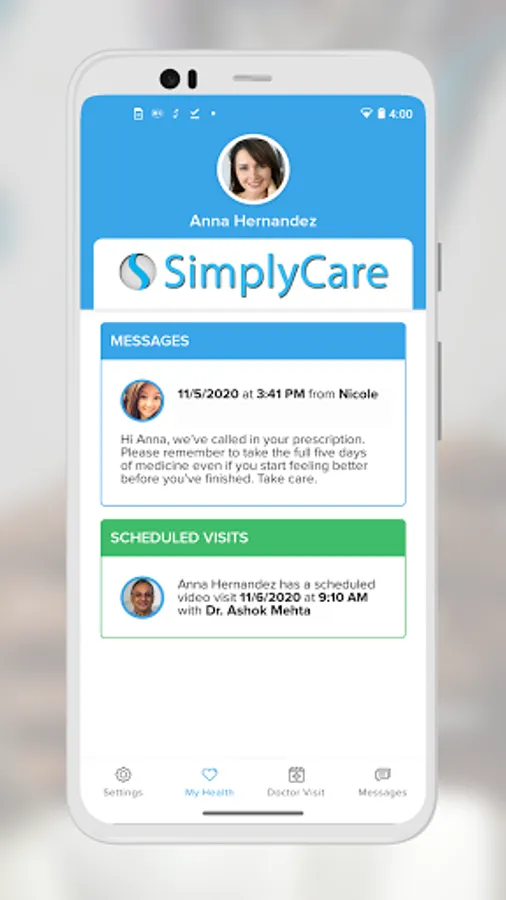 SEE US THROUGH VIDEO VISITS. Schedule a video visit by finding available times in your SimplyCare app's calendar. Or, see us right away if we are currently taking virtual video visit walk-ins. The app will let you know if we're available now. SimplyCare’s secure, reliable, high-quality video visits let you see us for many common medical issues when a trip to our office isn’t necessary or possible.