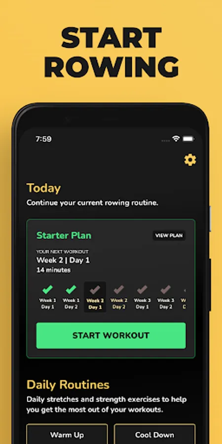 Start Rowing without any previous experience needed. Get in shape, build strength and burn calories. Our workout plans will train you for the next stage in your rowing journey.