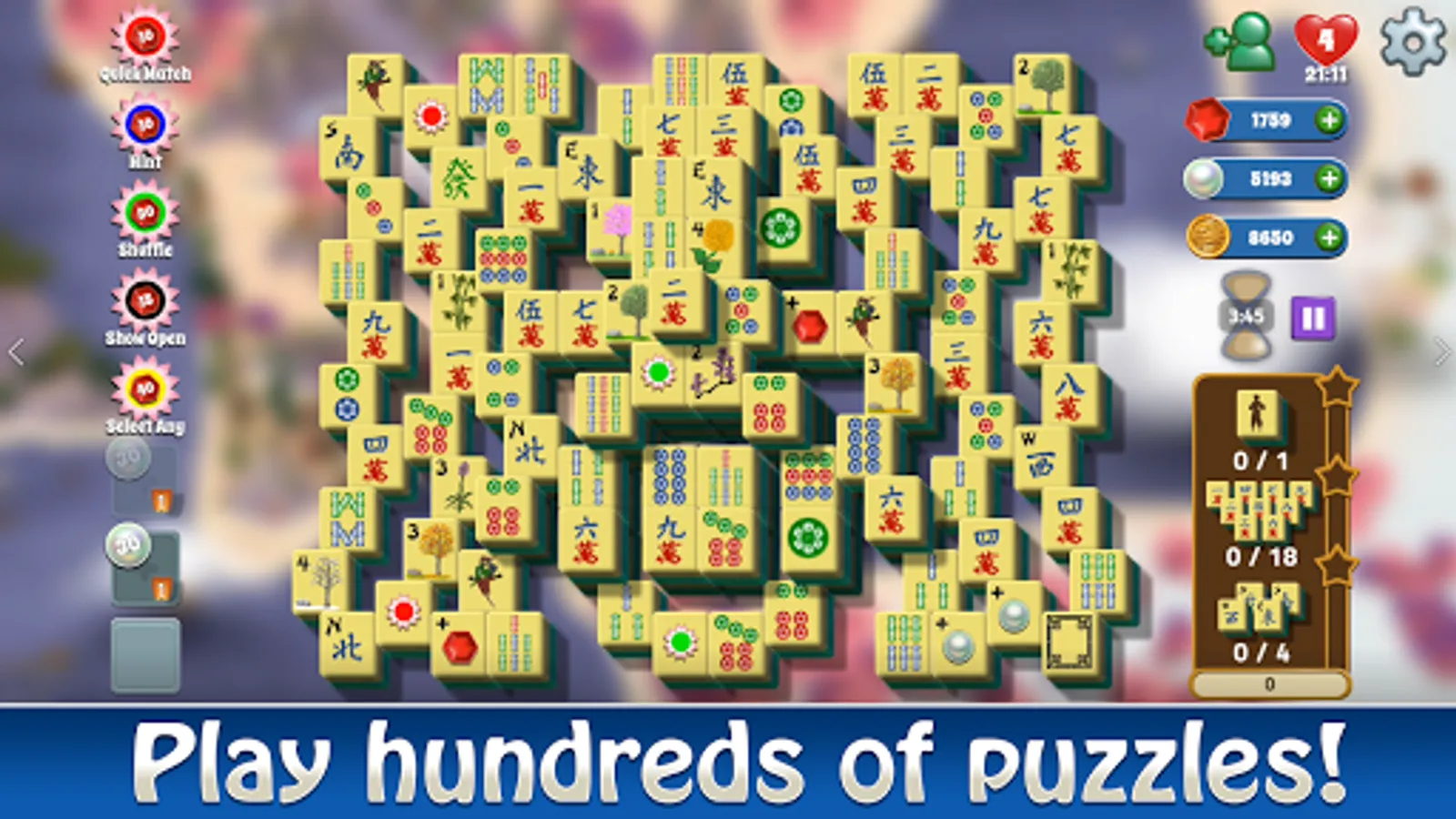 Match tiles in a unique mahjong experience with lantern festivals, power ups, and an amazing adventure story told through a traditional shadow play. Thousands of story puzzles take you through a wonderful land full of excitement and surprises with every tile match.