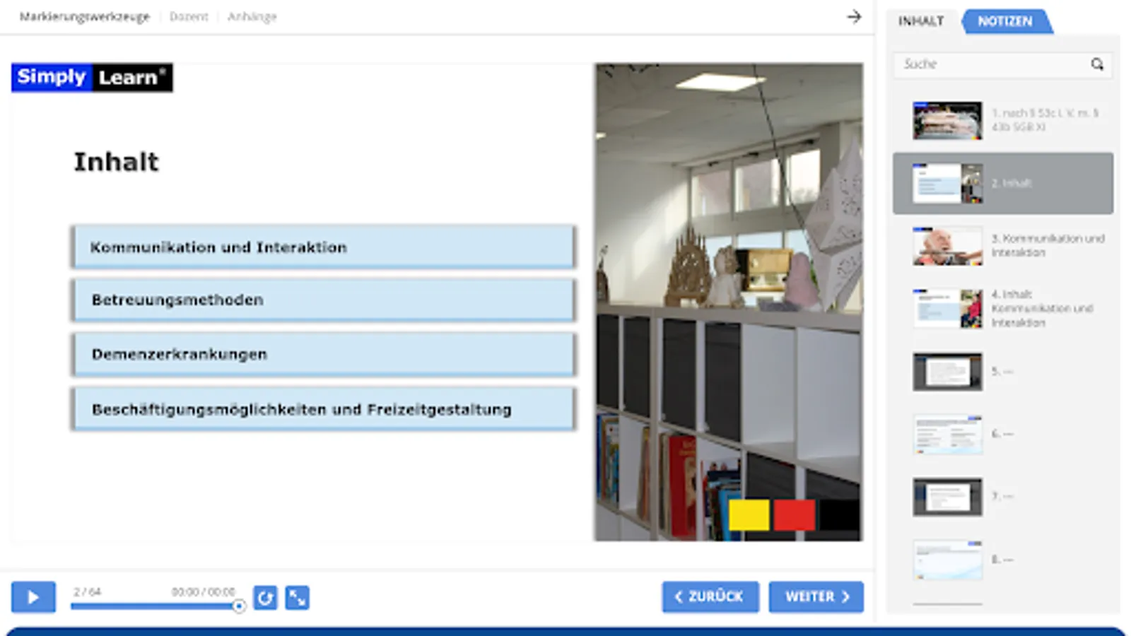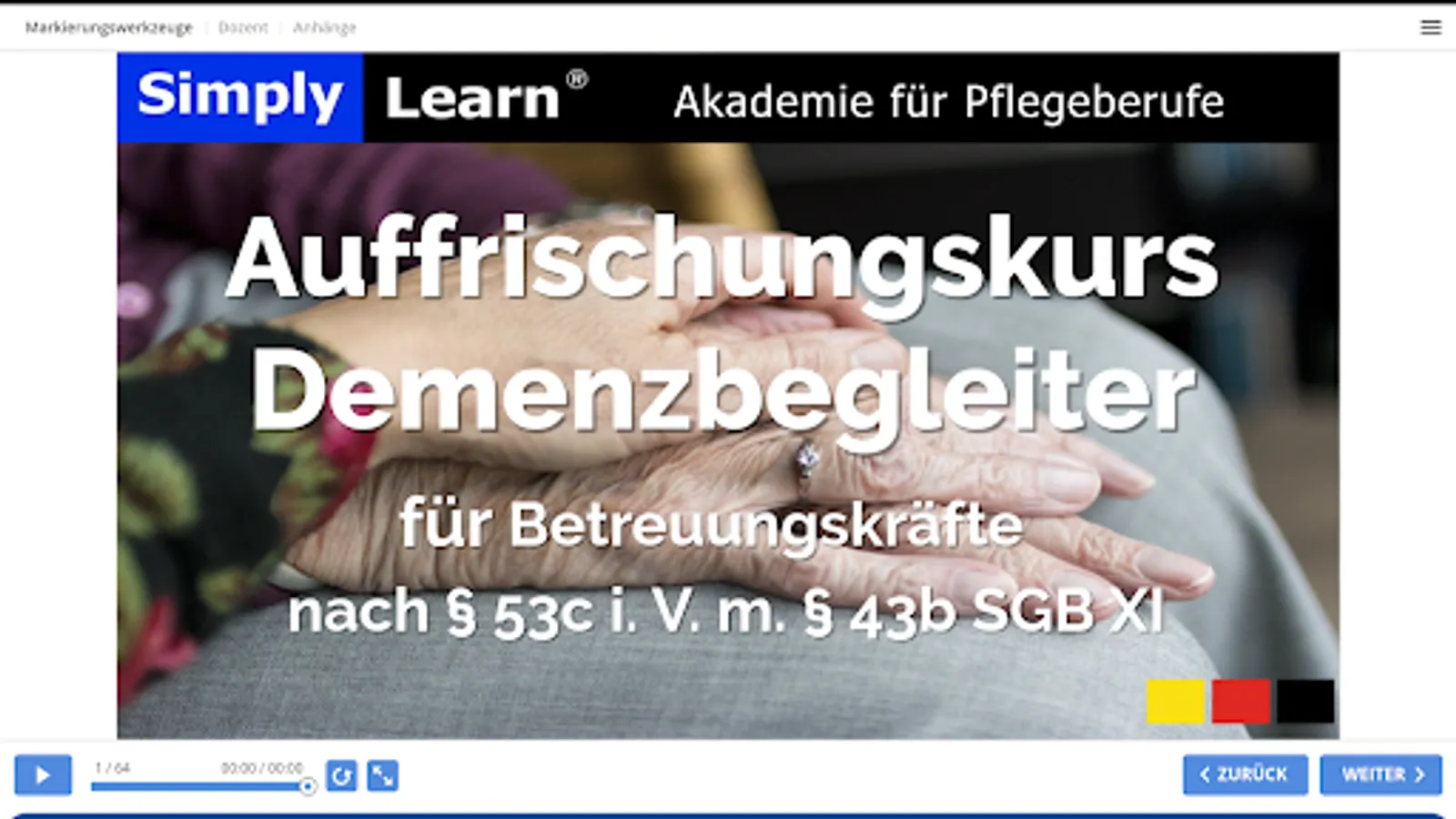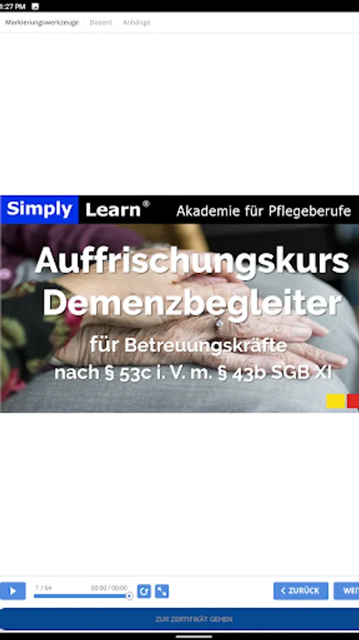 In this first self-learning phase, which accounts for 49% of the qualification, you will work independently in 7.5 hours. Information that is important for you as a carer in everyday life with people to be cared for.