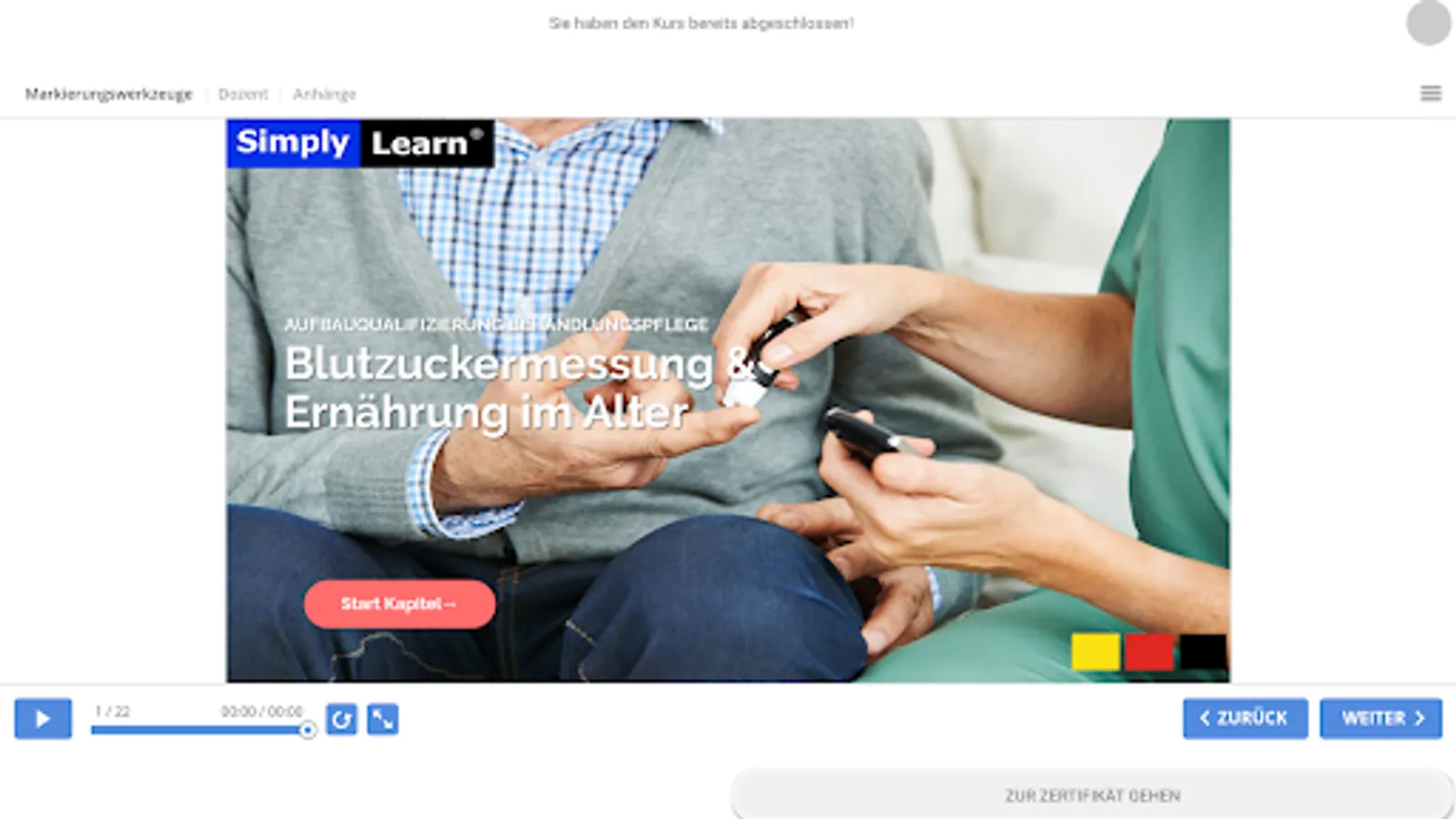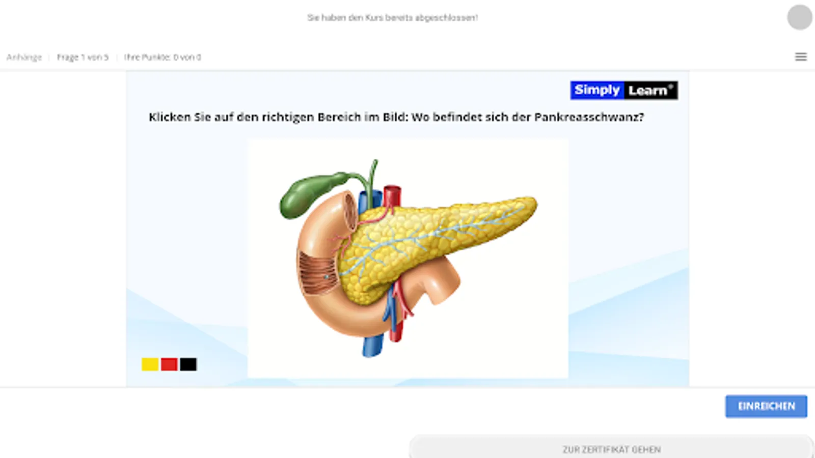 In addition to this online tool, the content of which you will work on, you must take part in 5 teaching units at our training facility. After completing the tool, please make an appointment with us by phone on 0208/4677727 or by email to info@simply-learn.de.