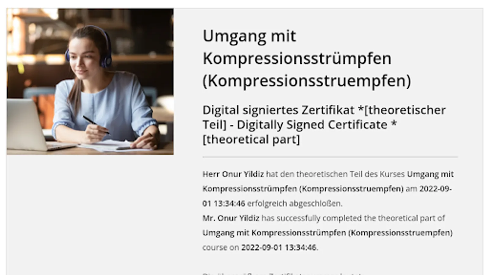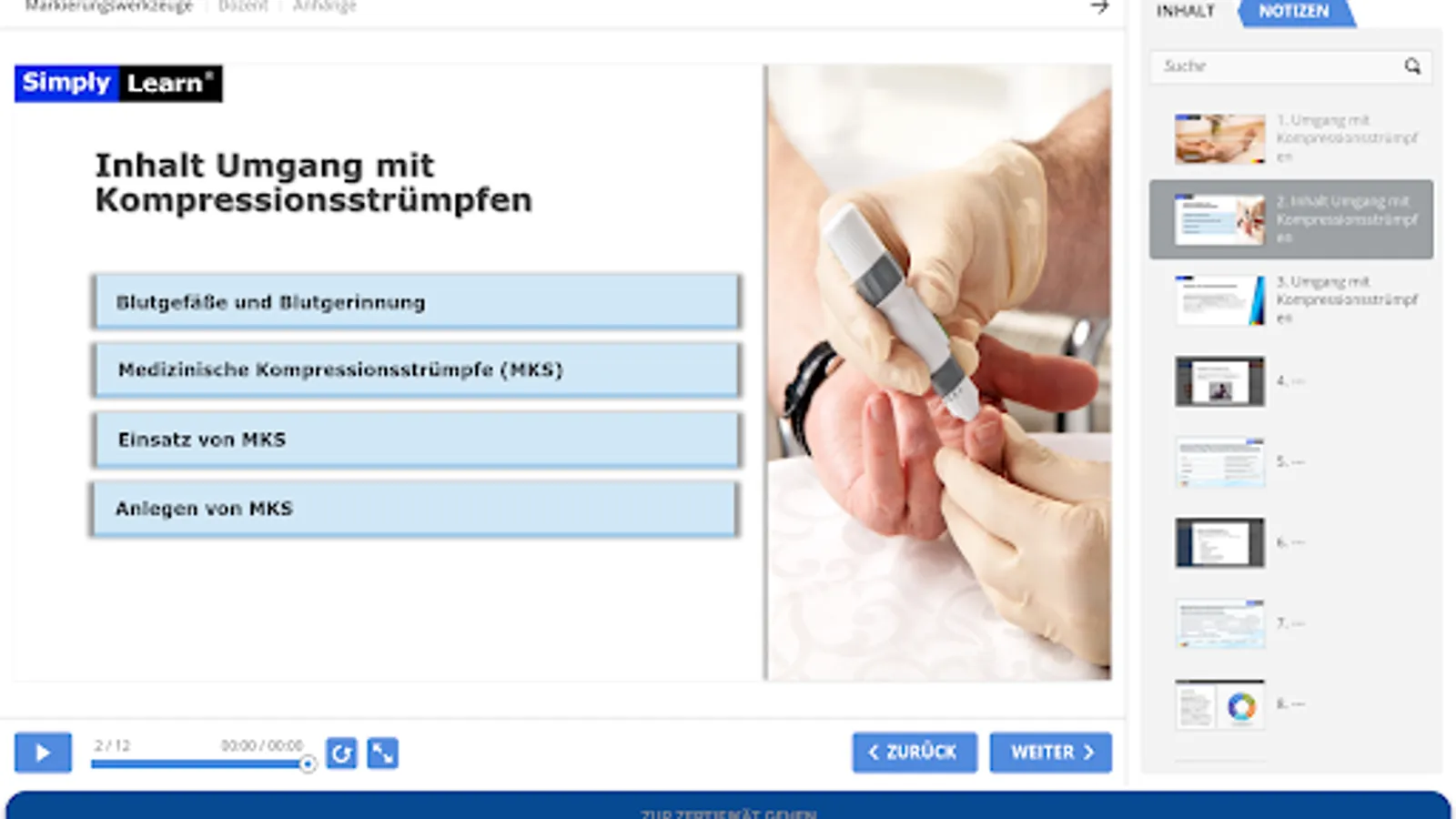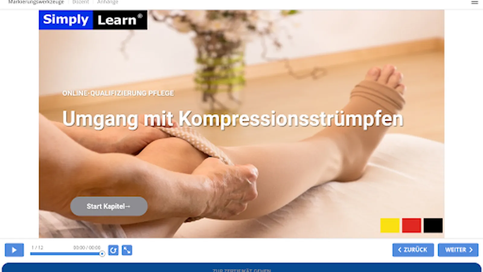 In this training you will learn theoretical knowledge about medical compression stockings (MCS). We look at the vascular system, diseases that require MCS, contraindications and finally also the application of MCS, which you will encounter again and again as an activity in everyday care.