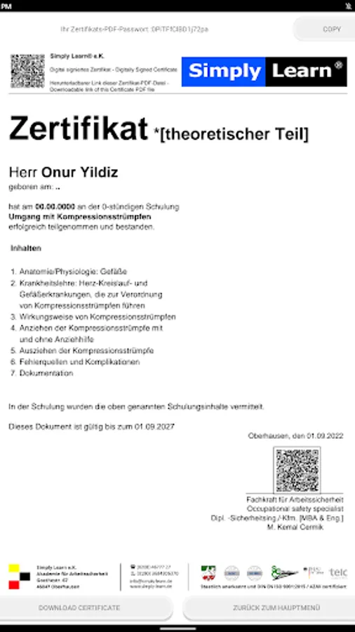 In addition to this online tool, the content of which you will work on, you must take part in 3 teaching units at our training facility. After completing the tool, please make an appointment with us by phone on 0208/4677727 or by email to info@simply-learn.de.
