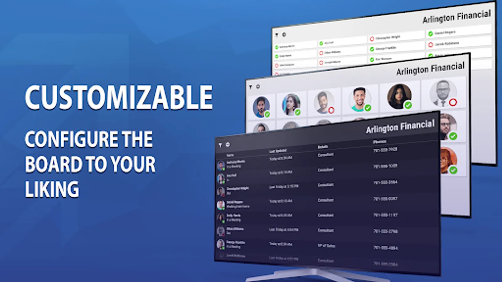* Easy to read status board