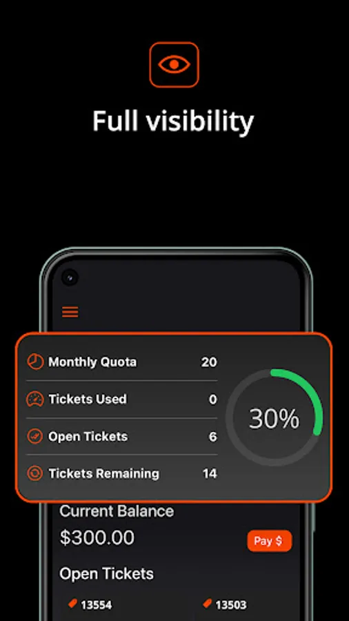 Managing your IT requests simplified. Get a birds eye view of all support metrics, including open tickets, monthly quota, and remaining tickets. Our app providing our customers to easily create and manage service requests as well as running reports and analytics. Need to pay for a request or project? Pay your balance right in the app!