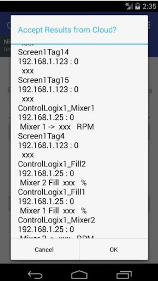 Simple app for monitoring ControlLogix Tags on your Android device. Has the ability to connect to ControlLogix from your local network, or from anywhere using our free cloud gateway.