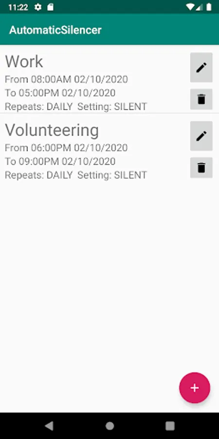 This application was developed as part of a college project and is thus absolutely free to use and has absolutely no ads. The simple interface allows you to add scheduled times to silence your phone for either a single instance or for recurring instances. The application supports multiple schedules and schedules can be edited, disabled, or deleted easily. You have the option to set total silence or set your phone to vibrate for each schedule in this Sound Vibration App.
