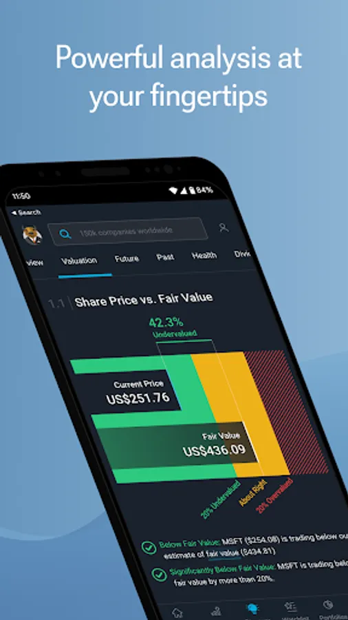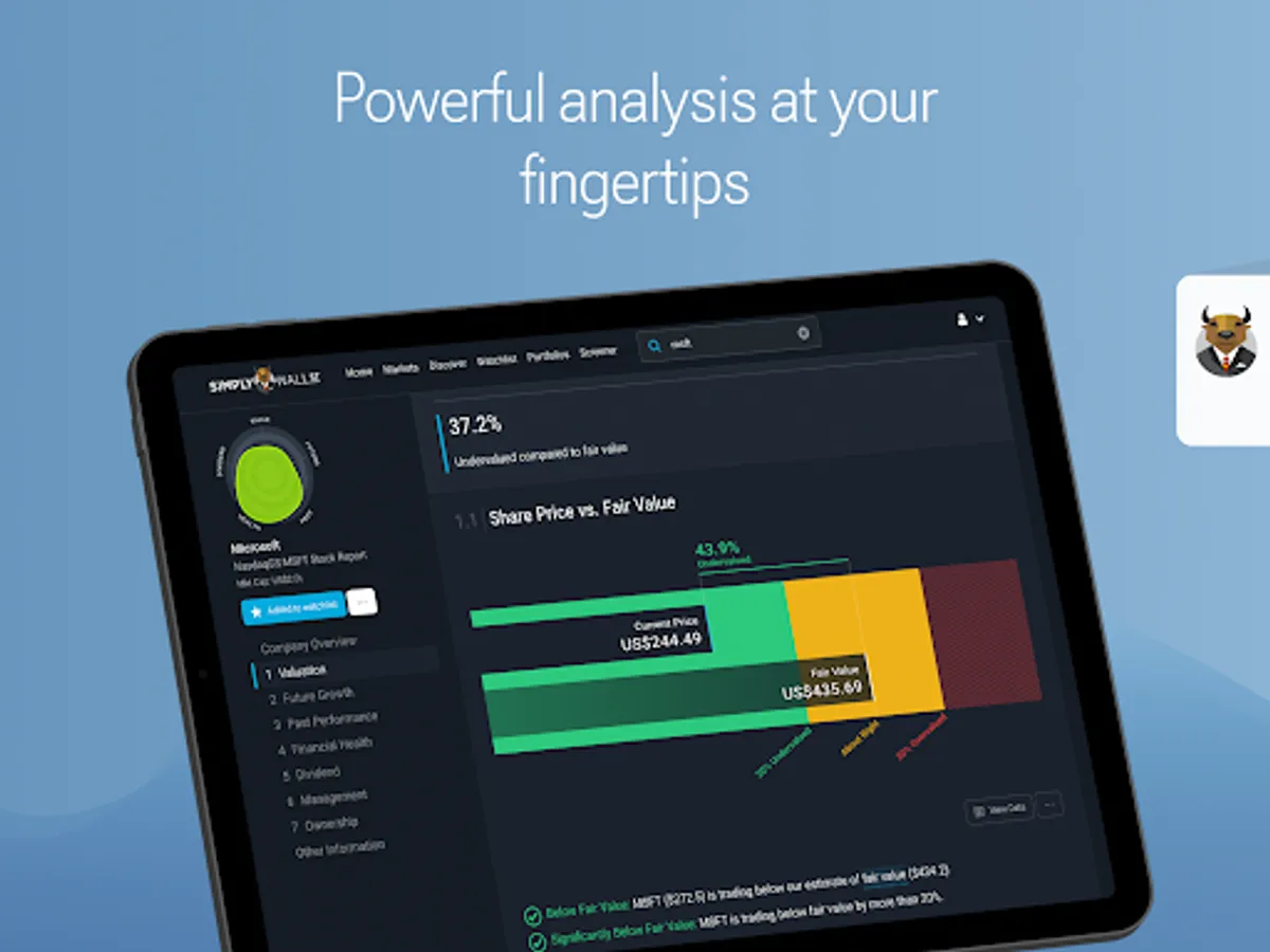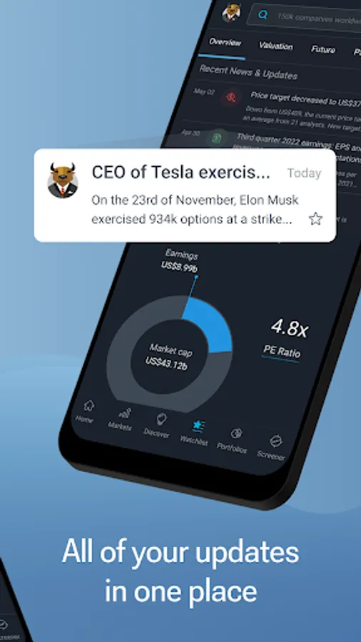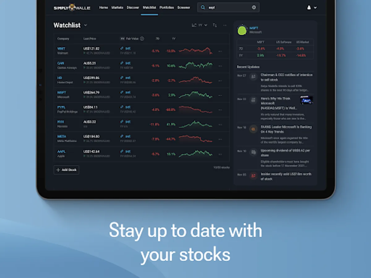 Stay up to date with important events and news on your stocks like earnings, insider trades and dividends. Your dashboard is the hub for all the latest developments on your stocks.You can also be notified of important developments. Data and analysis is updated regularly, identifying opportunities as fast as possible.