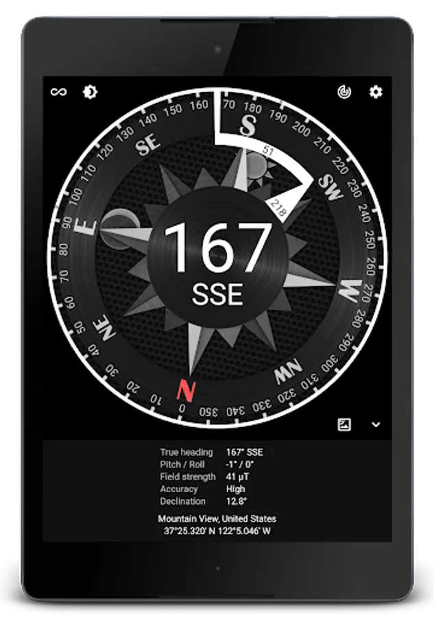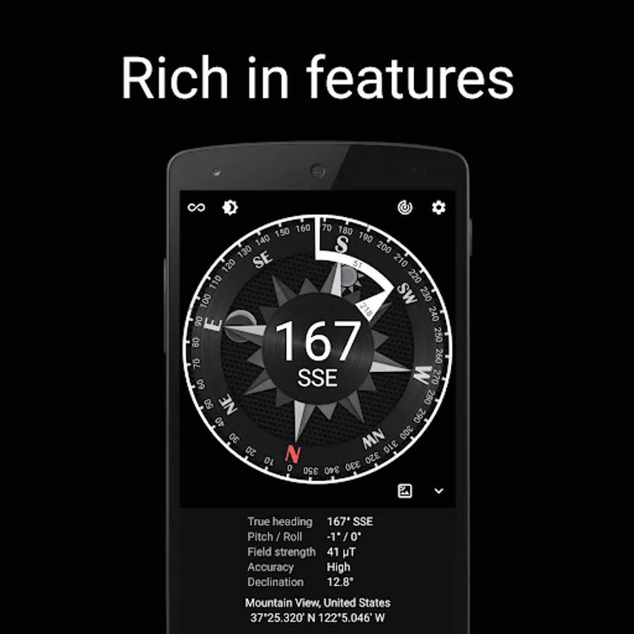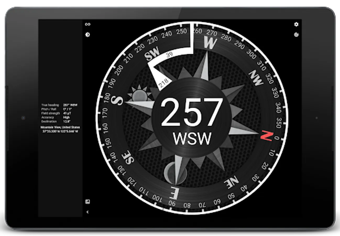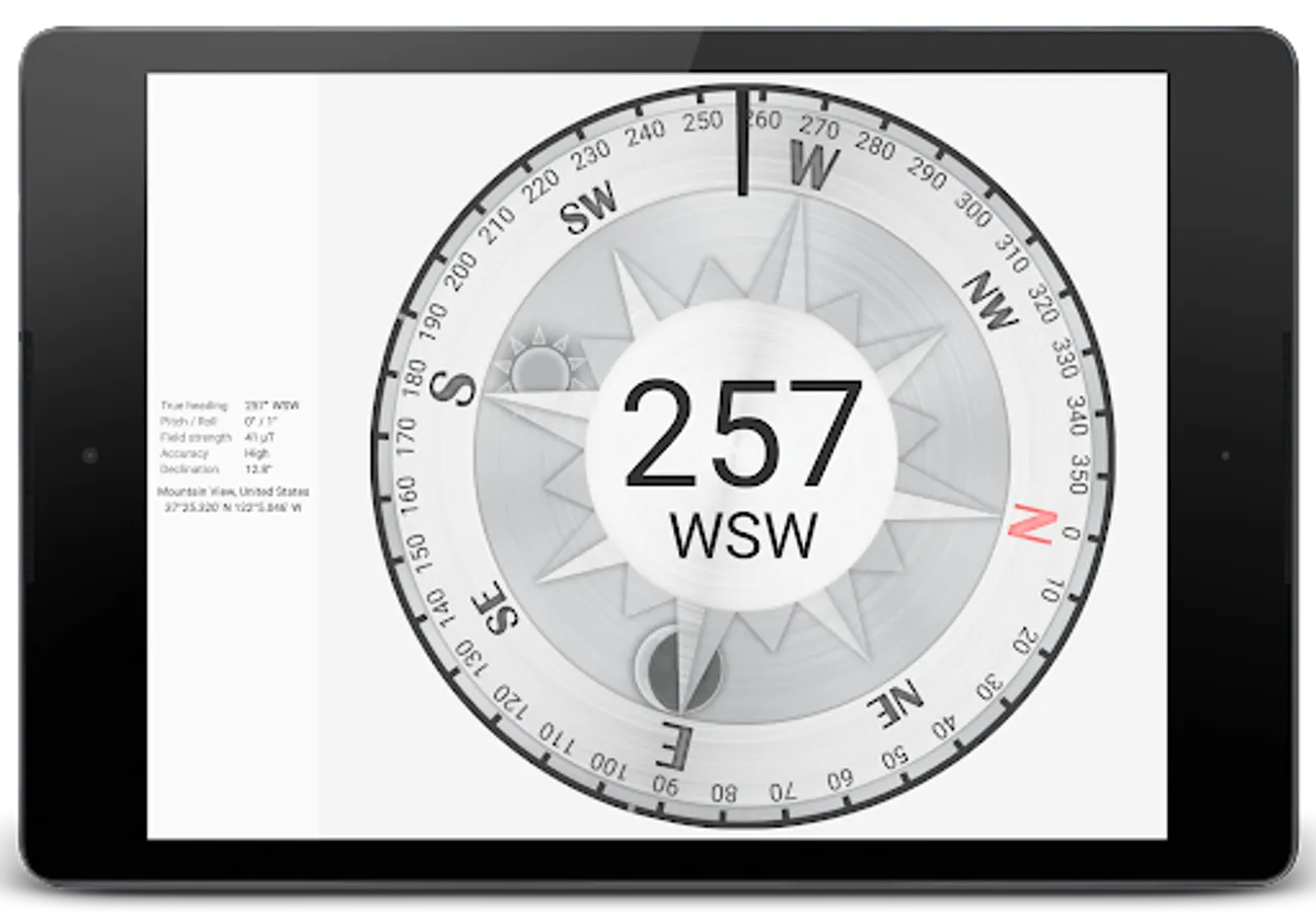 • 2 compass modes to choose from - True mode (based on True north) and Magnetic mode (based on Magnetic north).