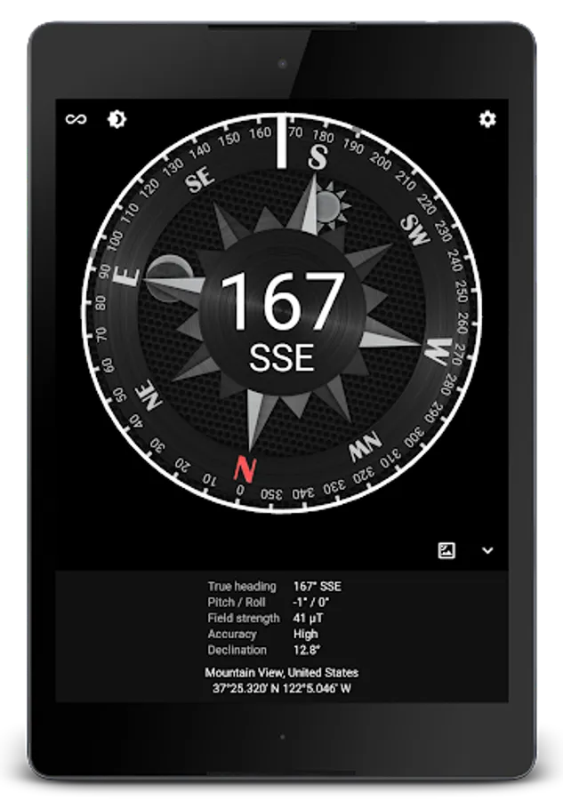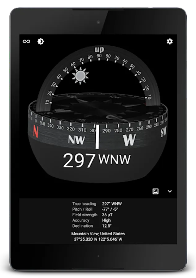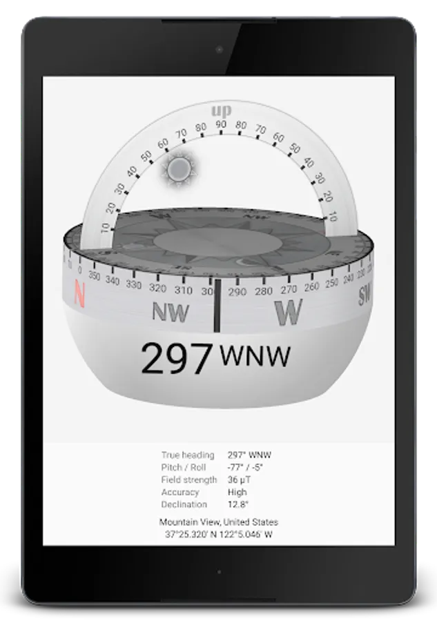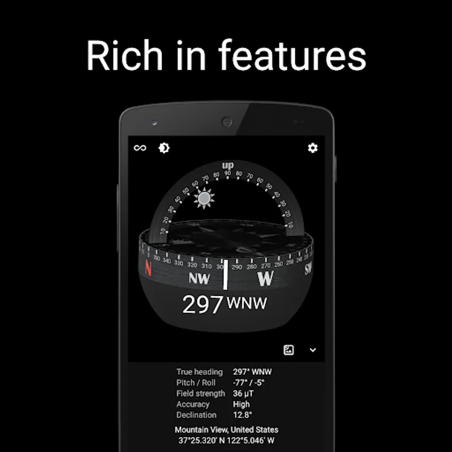 • 2 compass modes to choose from - True mode (based on True north) and Magnetic mode (based on Magnetic north).