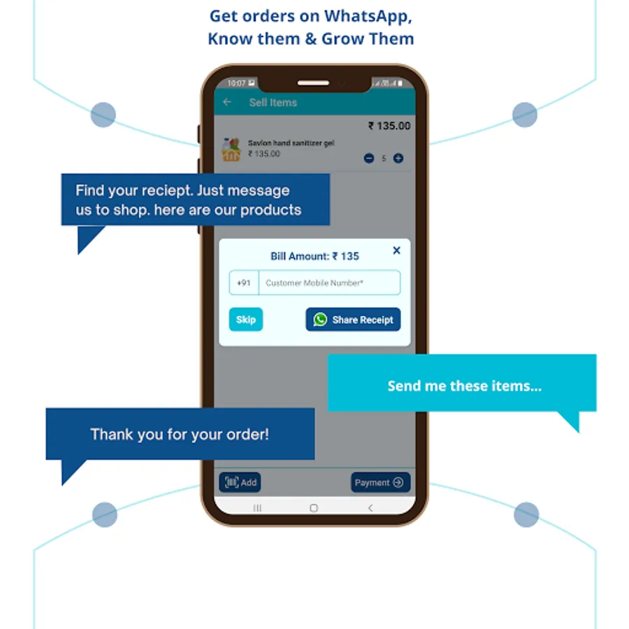 5. Get in touch with your customers over Whatsapp with our share receipt feature.