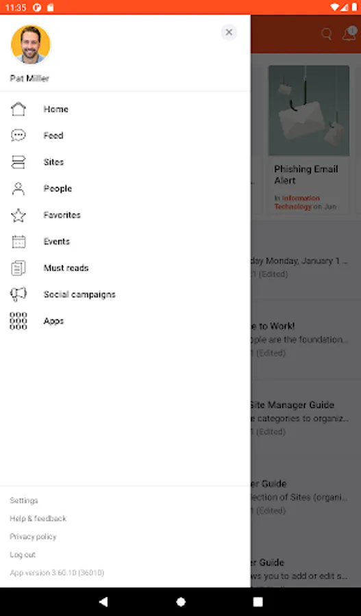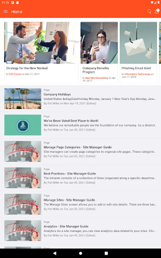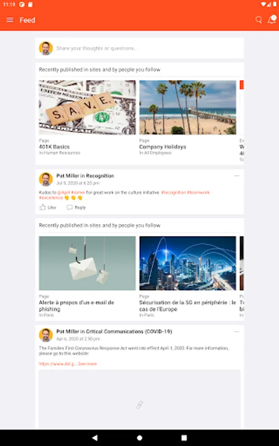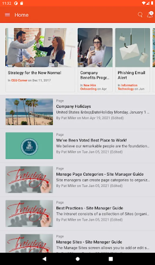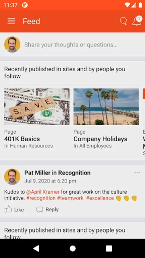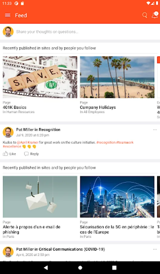 - Get push notification alerts about important news, must-read content and intranet interactions.