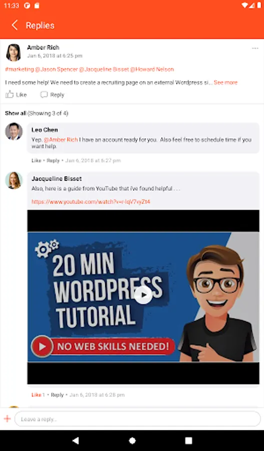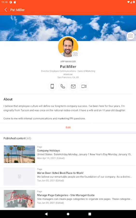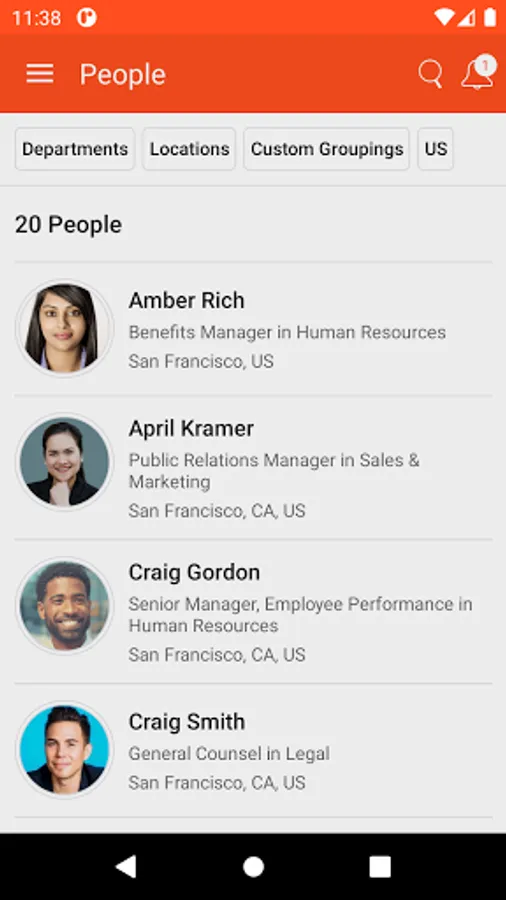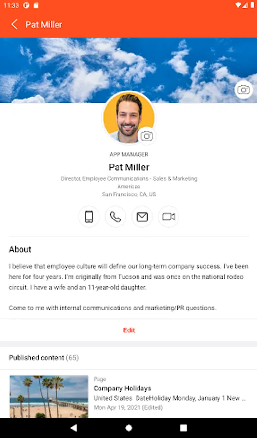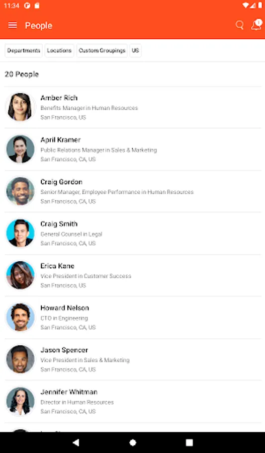 - Find and connect with coworkers using the employee directory, including searches by name, department, location, title and expertise.