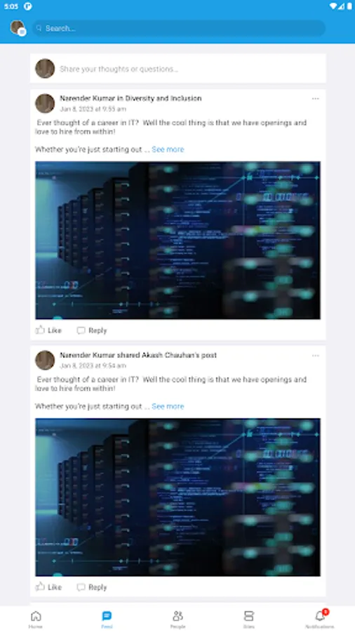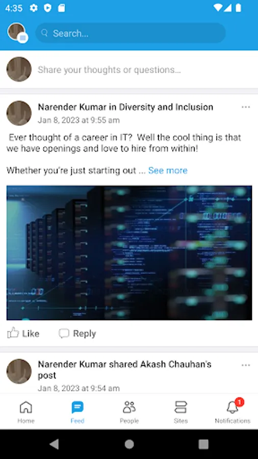 Connect with coworkers across the organization on special interest sites