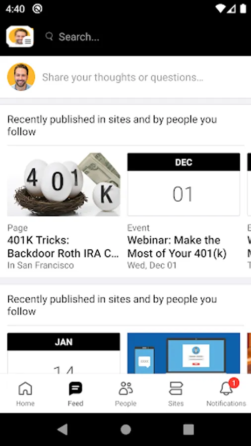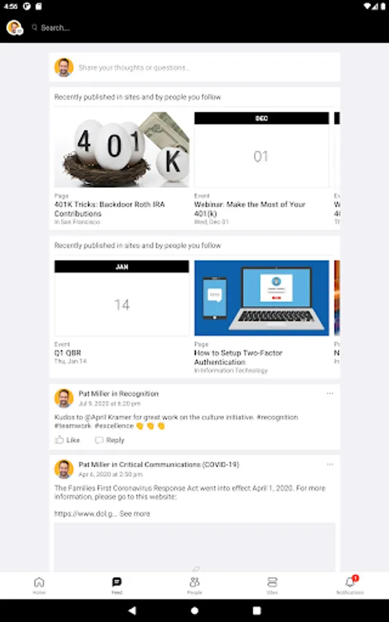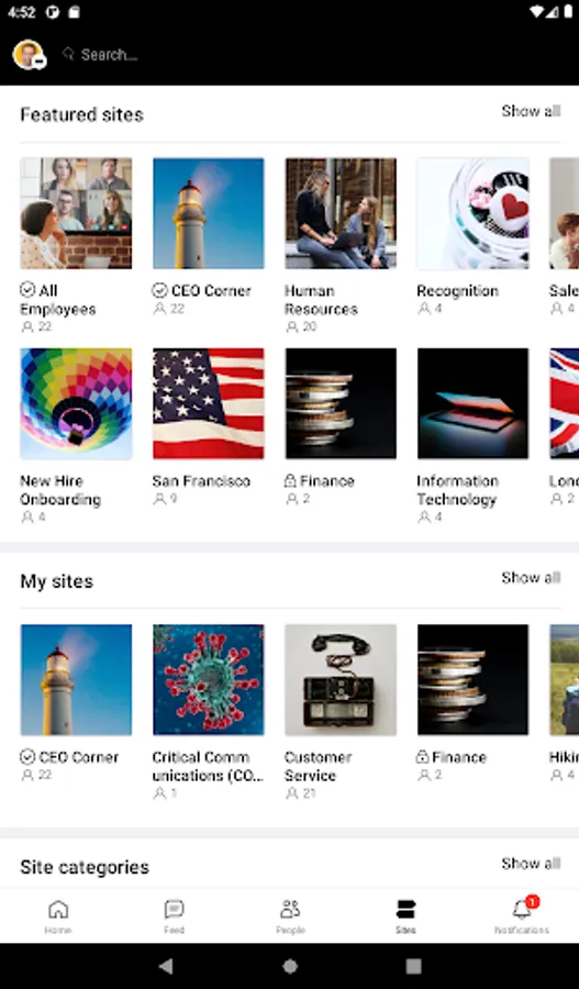 Connect with coworkers across the organization on special interest sites