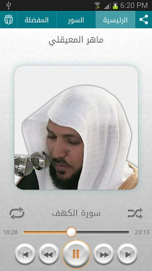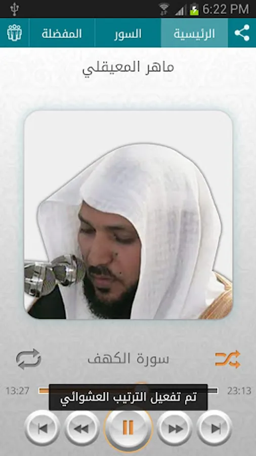 The application moves to the background and stops the surah in the event that a phone call is received and then the surah is followed up after the completion of the call