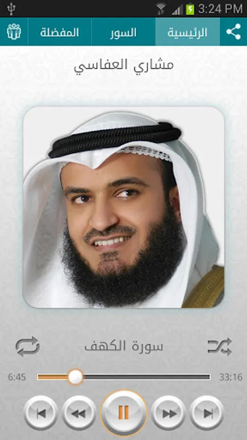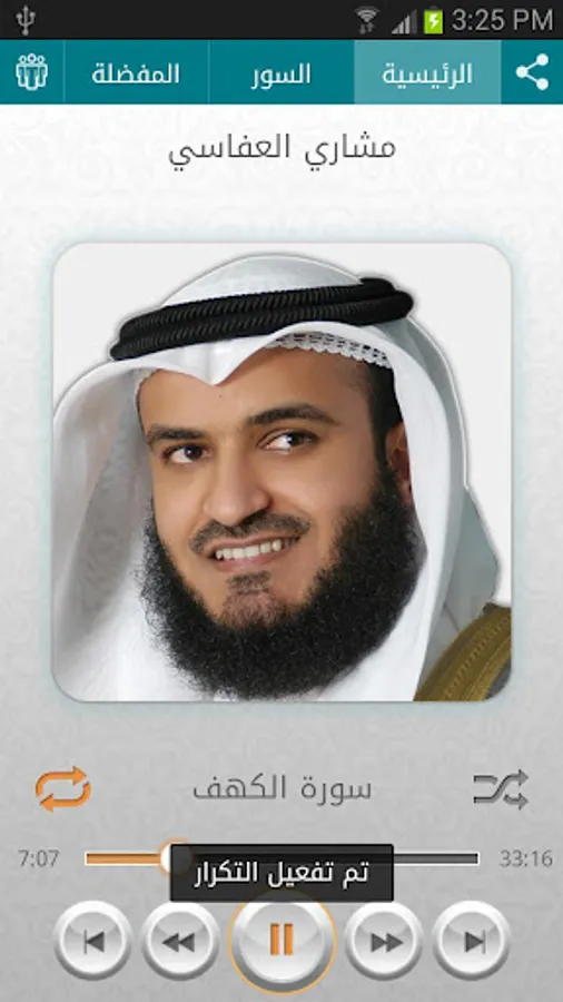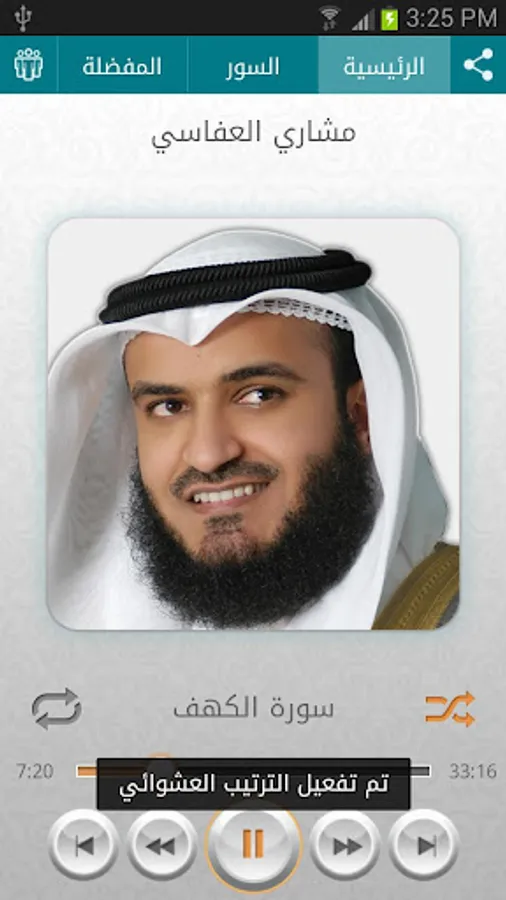 The ability to listen to the surah in the background and continue working on the device at the same time by pressing the back button and choosing to hide the program