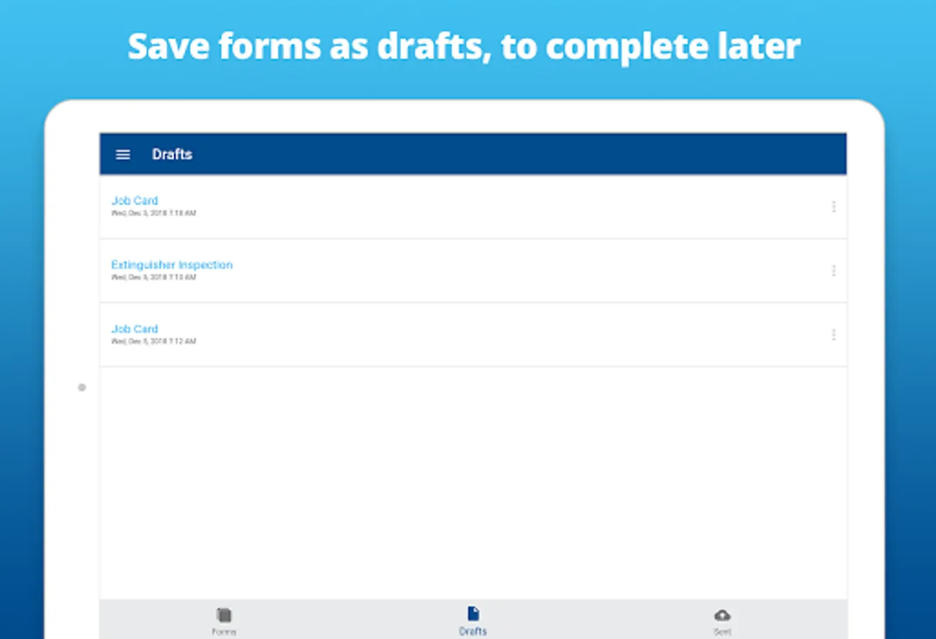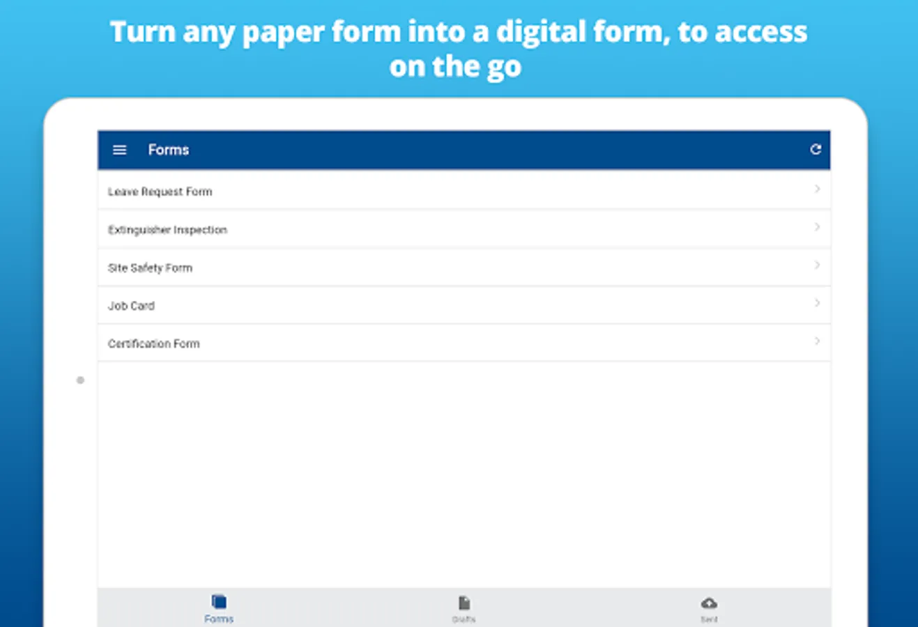 Simpro eForms digitises your forms workflow, ending your dependency on paper forms. Field employees complete and submit PDF forms to the eForms Portal, where they can be viewed, downloaded, or automatically actioned.