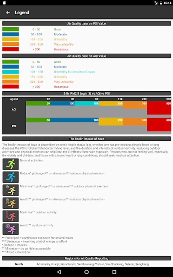 Singapore Air quality report with 24hr PSI/AQI, 1hr PM2.5(fine particulate matter), 24Hr PM2.5, 24Hr particulate matter (PM10), sulphur dioxide (SO2), nitrogen dioxide (NO2), ozone (O3), and carbon monoxide (CO).