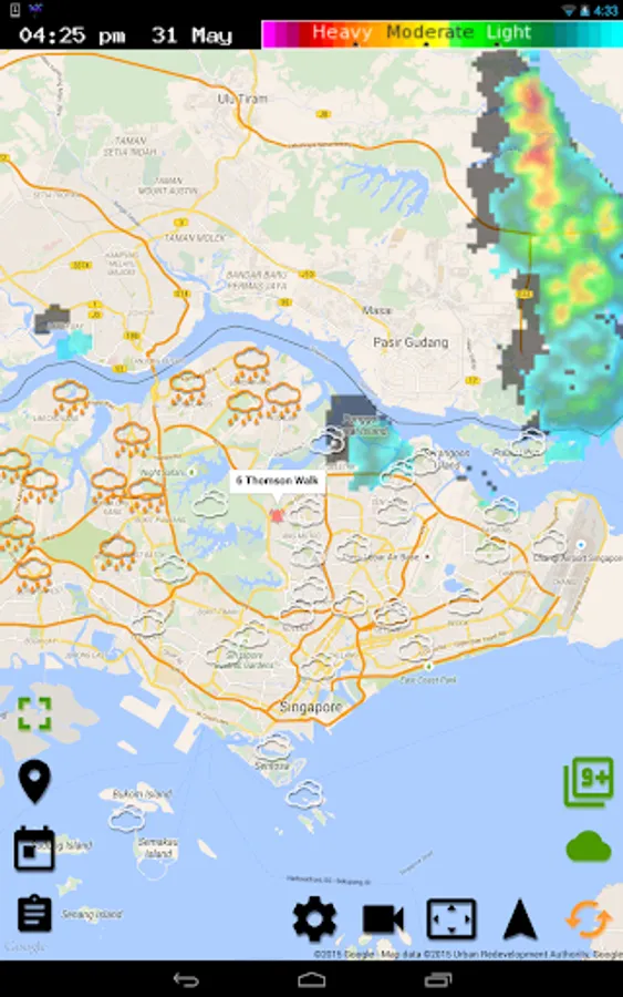 images start from ~30mins ago. 3rd button will fit your map view focus on whole Singapore