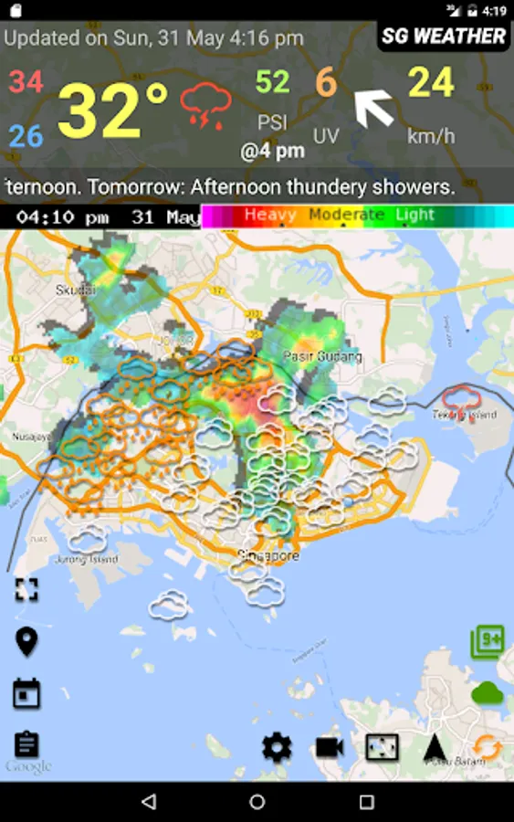 Singapore weather with radar map display, PSI alert and 24hrs Raining alert/Rain Stop Alert by any location in Singapore.