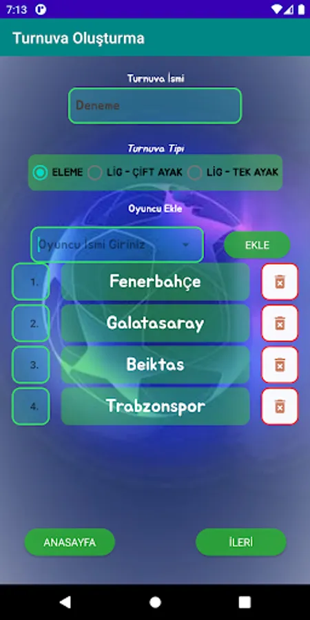 With the Tournament Manager, you can create tournaments with your friends. You can create your league and elimination tournaments. You can also access your old tournaments.