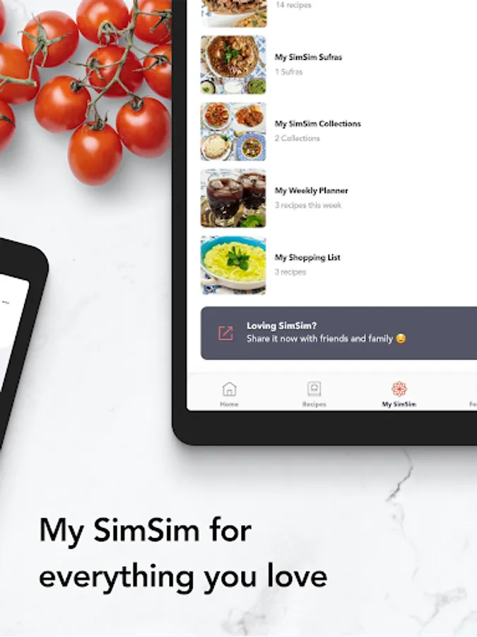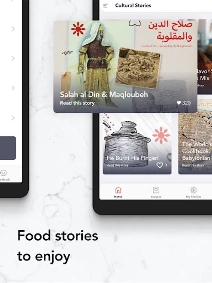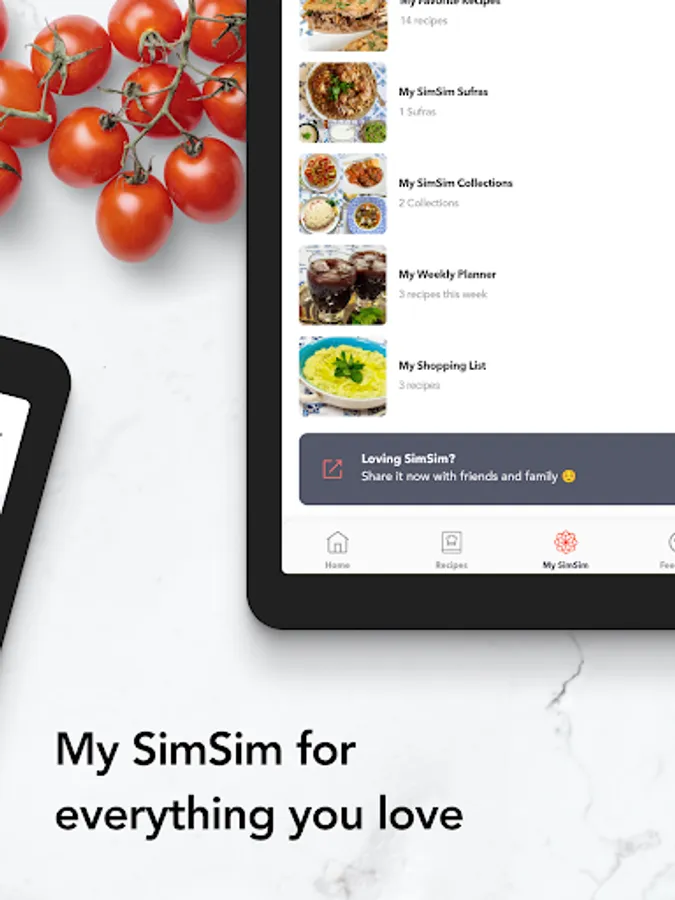 SimSim is all you need to cook delicious Arabic food. You’ll find the ingredients for each step in every step along with the photos, there’s a Weekly Planner to help you plan your meals, the Shopping List combines all the ingredients for the recipes you select, and there’s even a button that you can click so the screen stays on while you cook! And if you need some inspiration, browse through our Sufras and Collection, and read the Cultural Stories which we’re sure you’ll love.