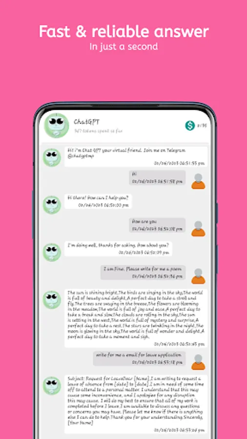 One of the main features of the application is that as an AI writer. It can understand and answer many types of questions because the AI system has been trained through a machine learning process with a large amount of data. This also makes it a perfect personal AI assistant to understand and respond to a variety of inputs in the most natural and human-like way. Whether you want to chat about a specific topic, ask for information or need help with a task, AI chat bot will always answer you quickly and accurately. You can also copy responses from the AI chat bot and share them quickly. GDT – AI Chat, AI Friend is an expert in every field, for example with a few prominent areas: