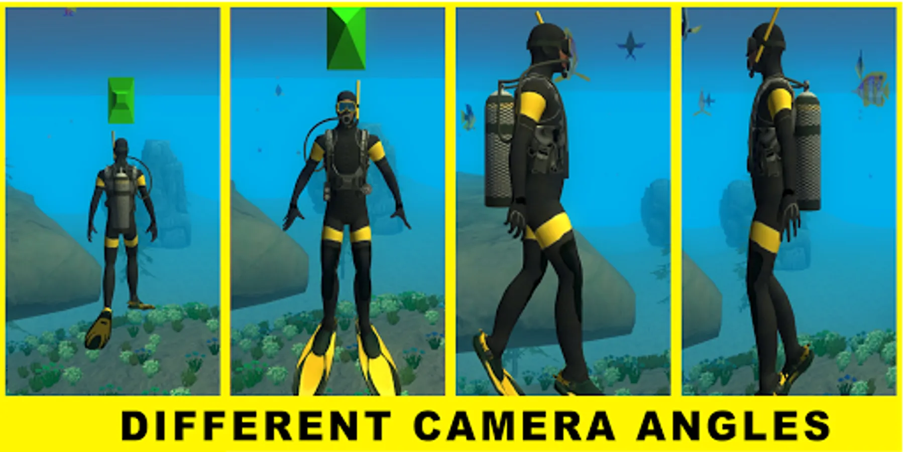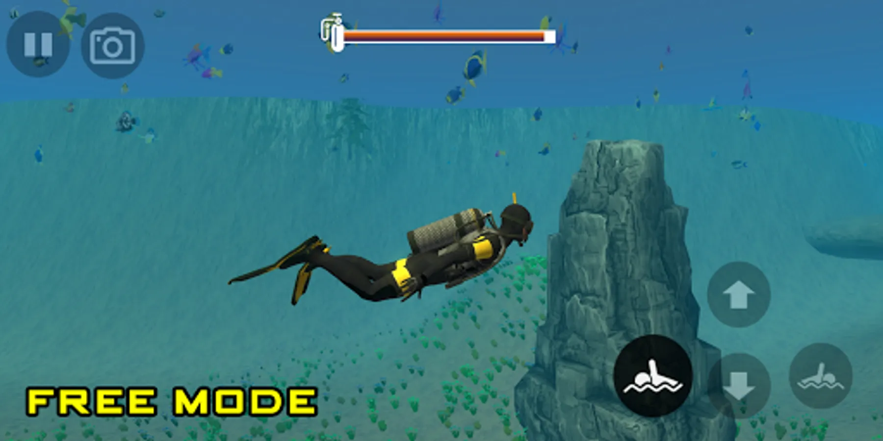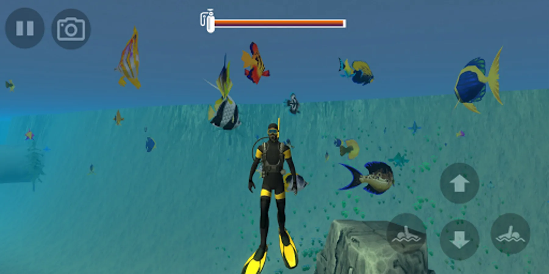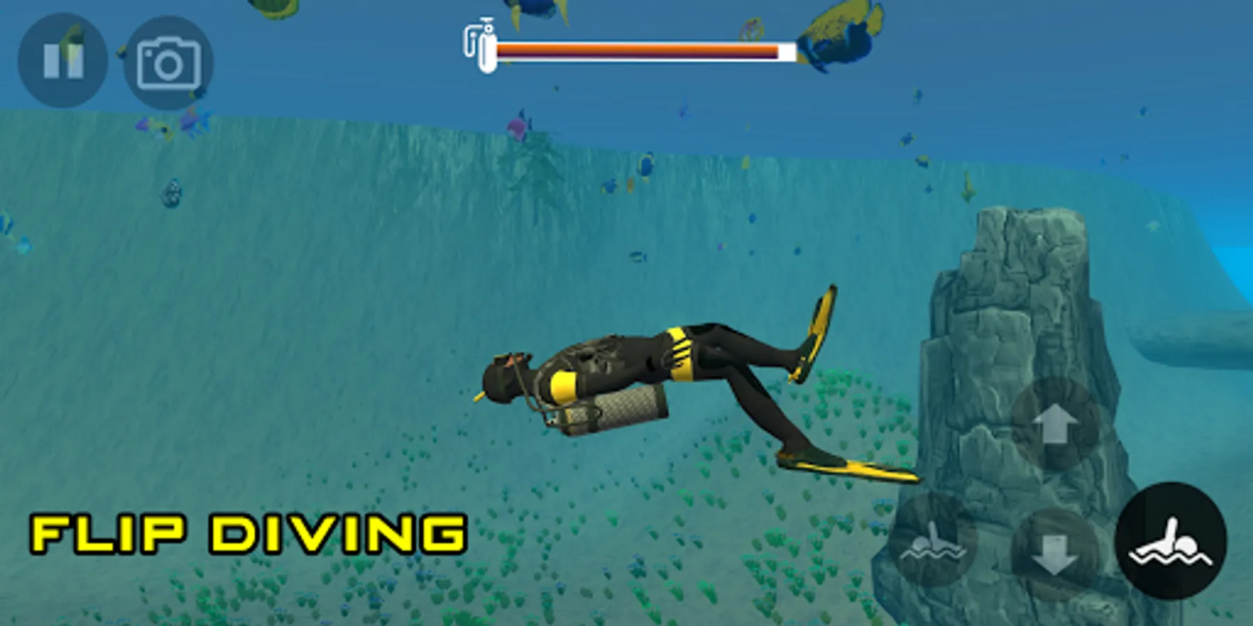 We enjoy another way of diving in deep water with a scuba diving game. If you are unfamiliar with deep diving, it is now easy to dive with the dive simulator. In scuba underwater simulator you can enjoy shark hunting with the diving simulation game and you can go on a deep-sea diving adventure.