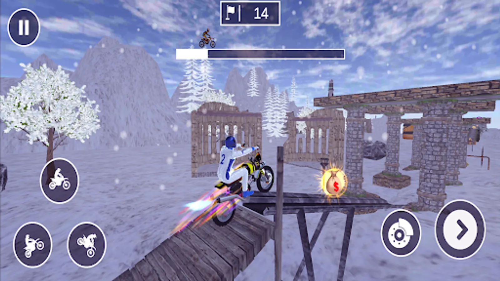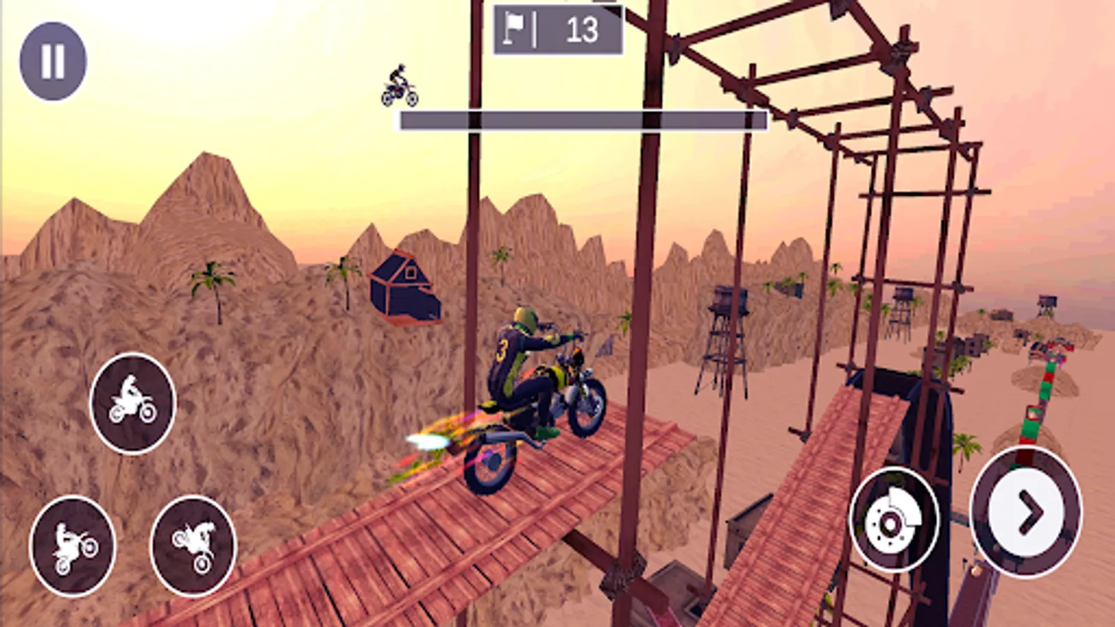 Crazy bike stunts games have extreme riding experience with mountain jumping.