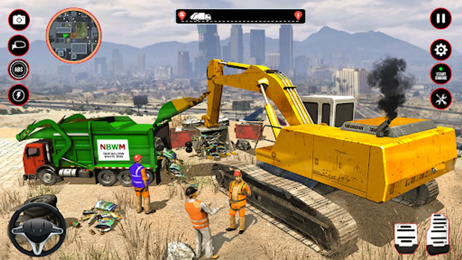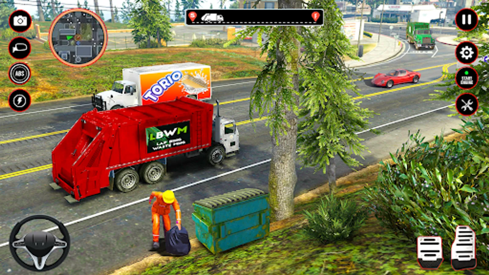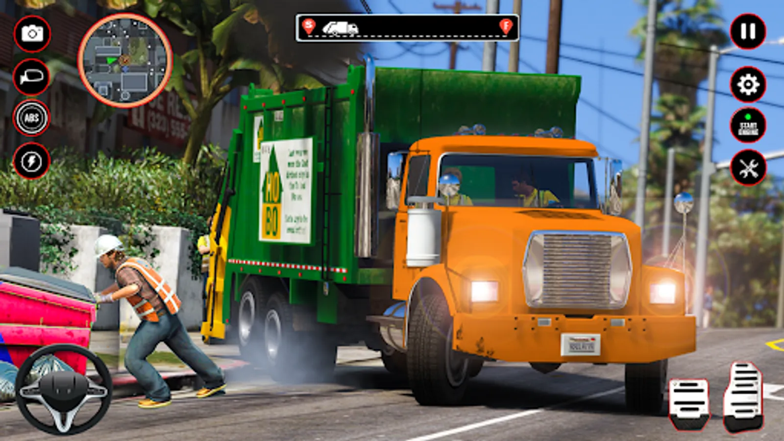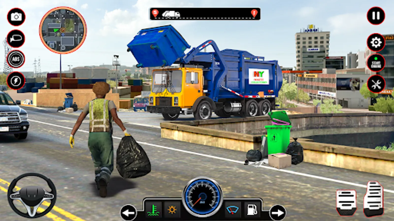 Keep the roadways clean by using your chosen garbage vehicle, either it's a trash trolley tied to a rickshaw, a motorcycle, or a pickup truck. You can either carry on with job mode or open world mode with tons of extreme challenges. Use the race and brake button to maneuver your trash truck in right direction by following the guidelines. The arrow buttons will aid you in your navigation in the city. Use garbage pick button, to load garbage in your truck.