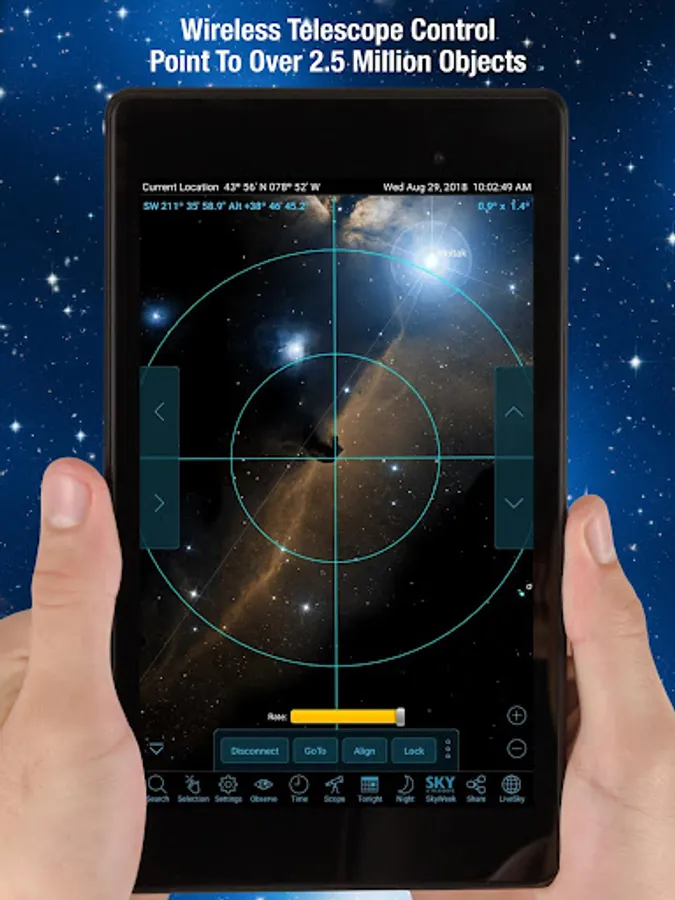 7) Tilt It. Every old astronomy app these days lets your tilt and pan your device to show different parts of the sky, but who else lets you control your telescope that way!? “Tilt to slew” is an optional mode allowing you to keep your eye in the eyepiece, and, using the accelerometers in your device, gently translate the movements of your hands into smooth telescope motion.