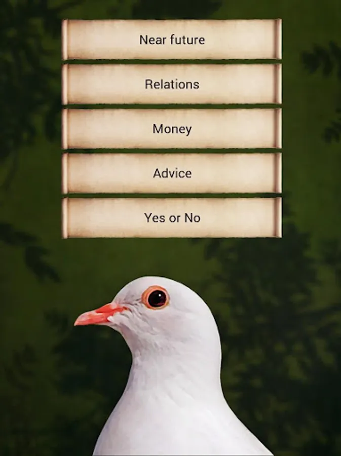 Ask for help the unusual prophet — Destiny Dove. It will help you, giving predictions and advices on various subjects. You also can mentally ask it a question and receive the answer of "Yes or No".