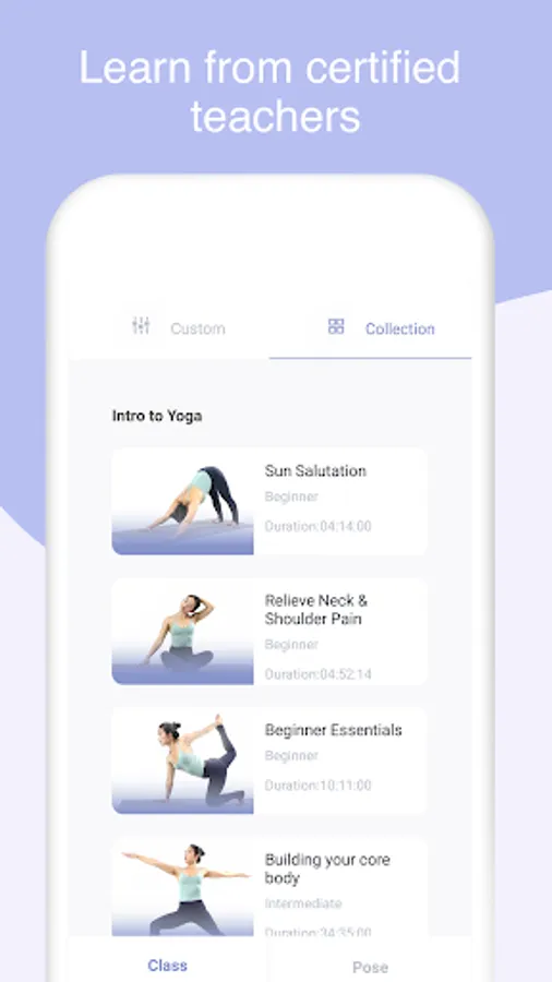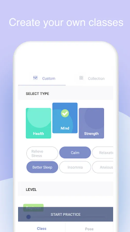 You can choose between strength, relaxation and health-focused flows, using curated collections of yoga poses for the optimal results.