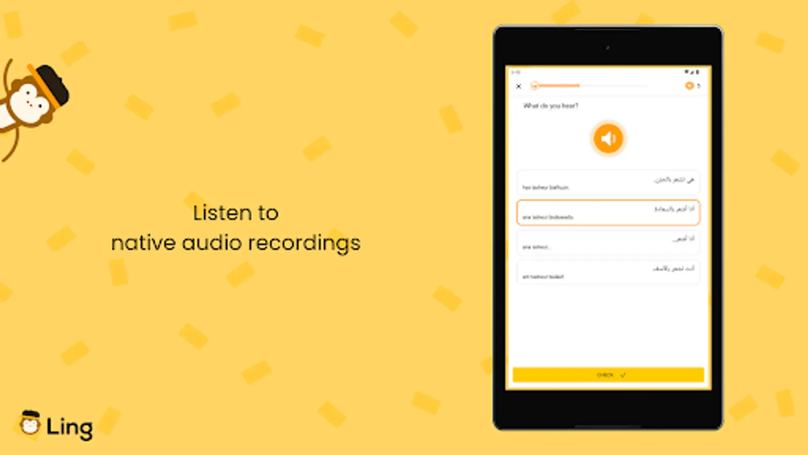 Traditional Arabic language lessons can be tedious and dull. At Ling, we’ve made the learning process fun by using puzzles, games, challenges, and quizzes to teach you how to read, write, speak, and understand Arabic!