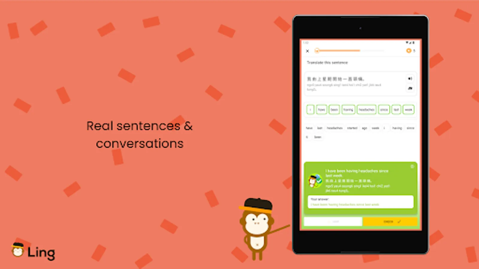 Traditional English language lessons can be tedious and dull. At Ling, we’ve made the learning process fun by using puzzles, games, challenges, and quizzes to teach you how to read, write, speak, and understand English!