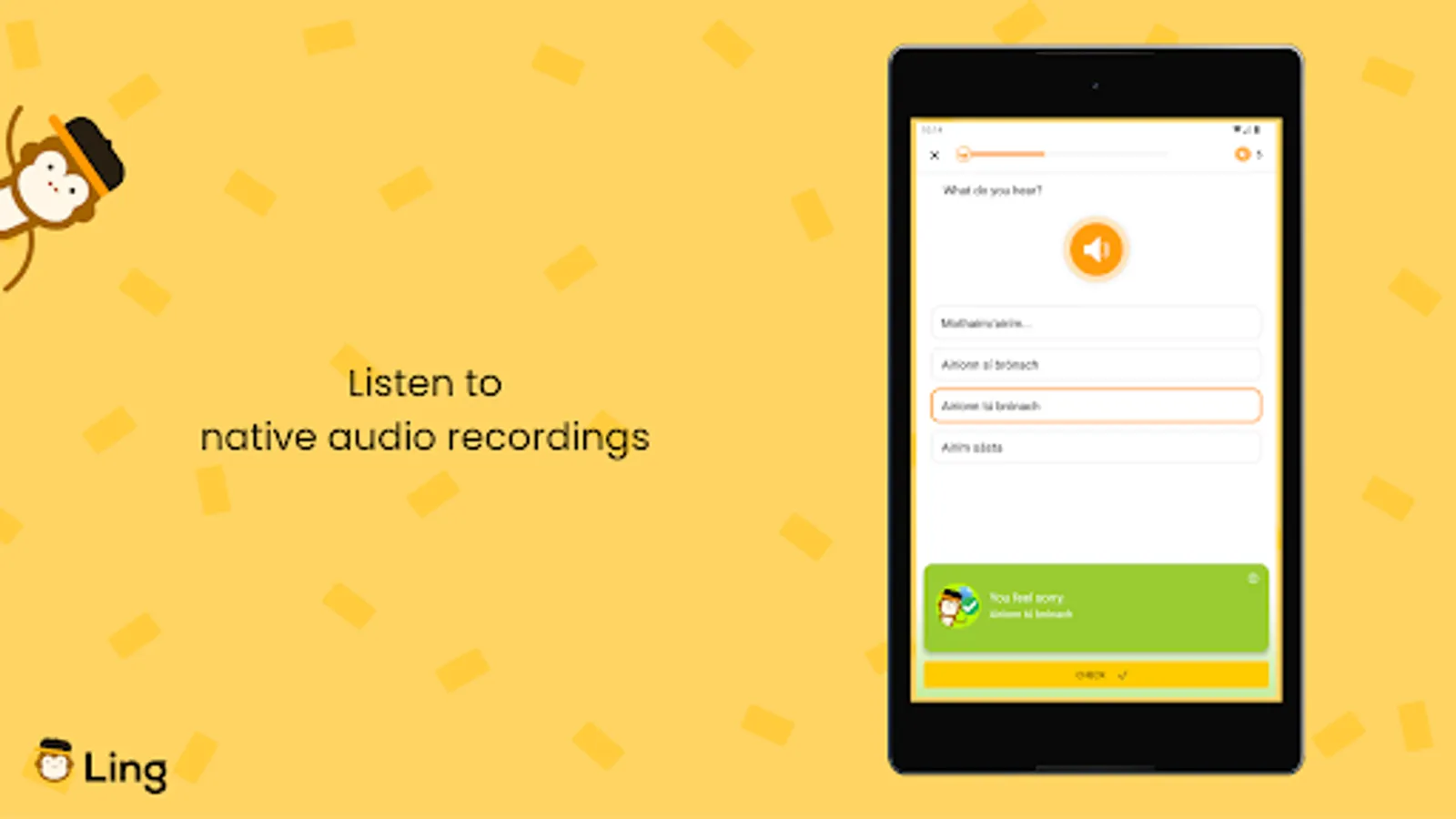 Traditional Irish language lessons can be tedious and dull. At Ling, we’ve made the learning process fun by using puzzles, games, challenges, and quizzes to teach you how to read, write, speak, and understand Irish!