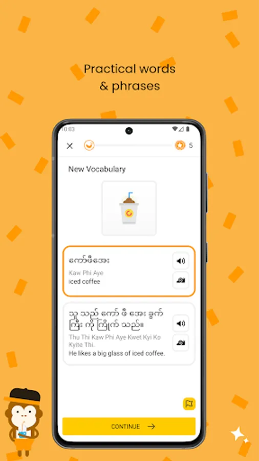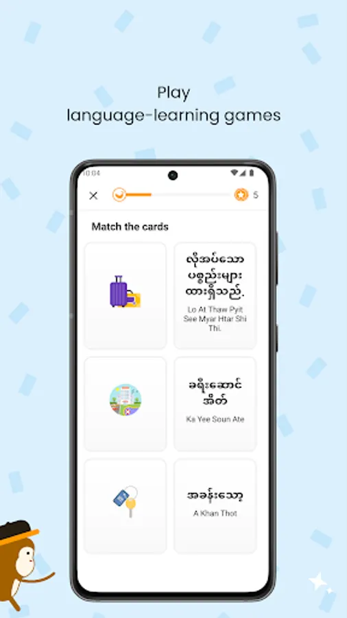 Our free Burmese language learning app is designed to make learning Burmese as easy and as fun as possible! Using a variety of mini-games and interactive learning techniques, you’ll be able to immerse yourself in the Burmese language using just your smartphone!