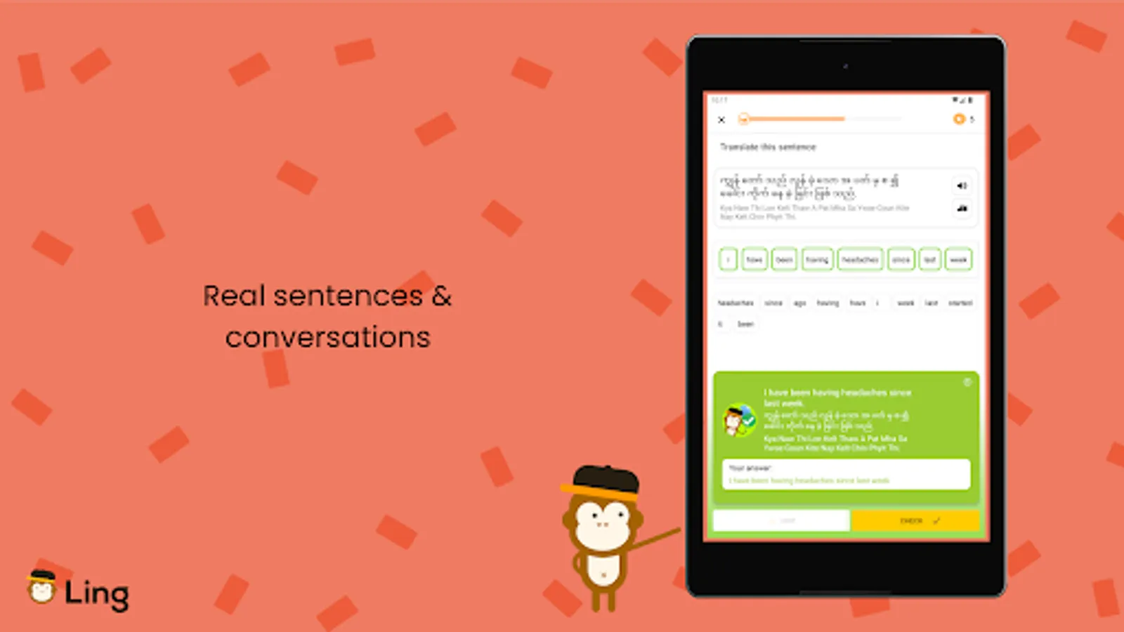 Traditional Burmese language lessons can be tedious and dull. At Ling, we’ve made the learning process fun by using puzzles, games, challenges, and quizzes to teach you how to read, write, speak, and understand Burmese!