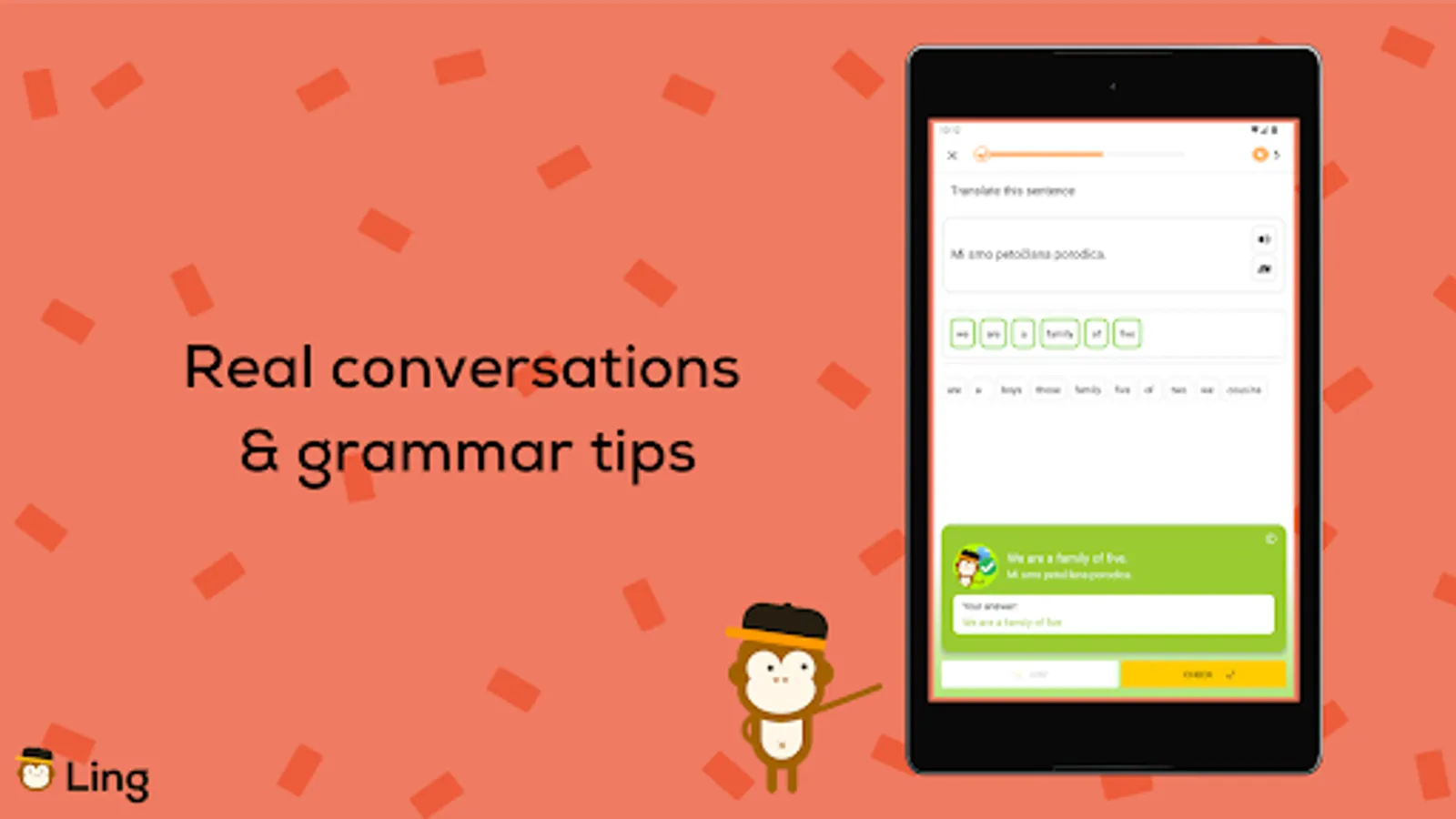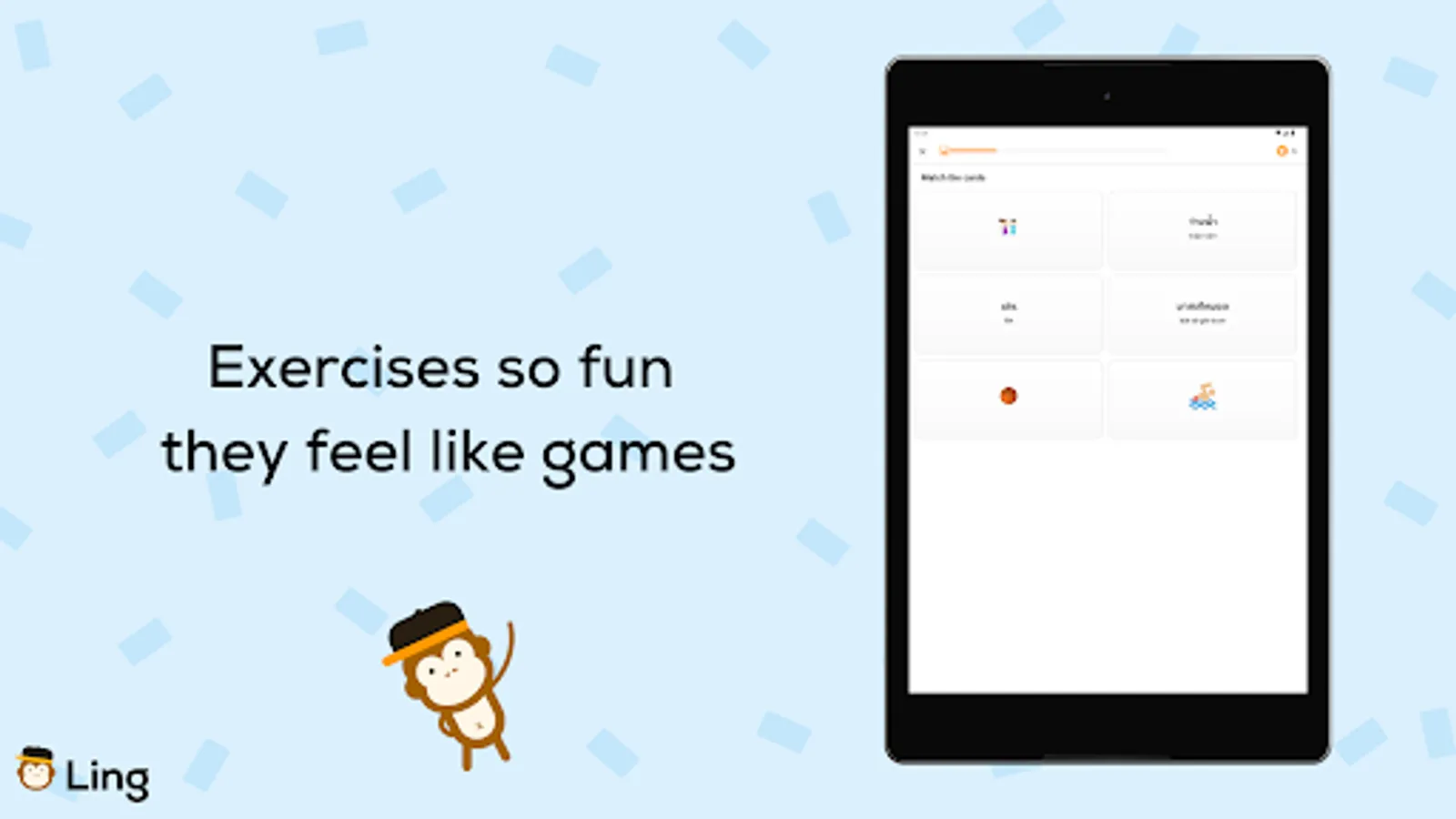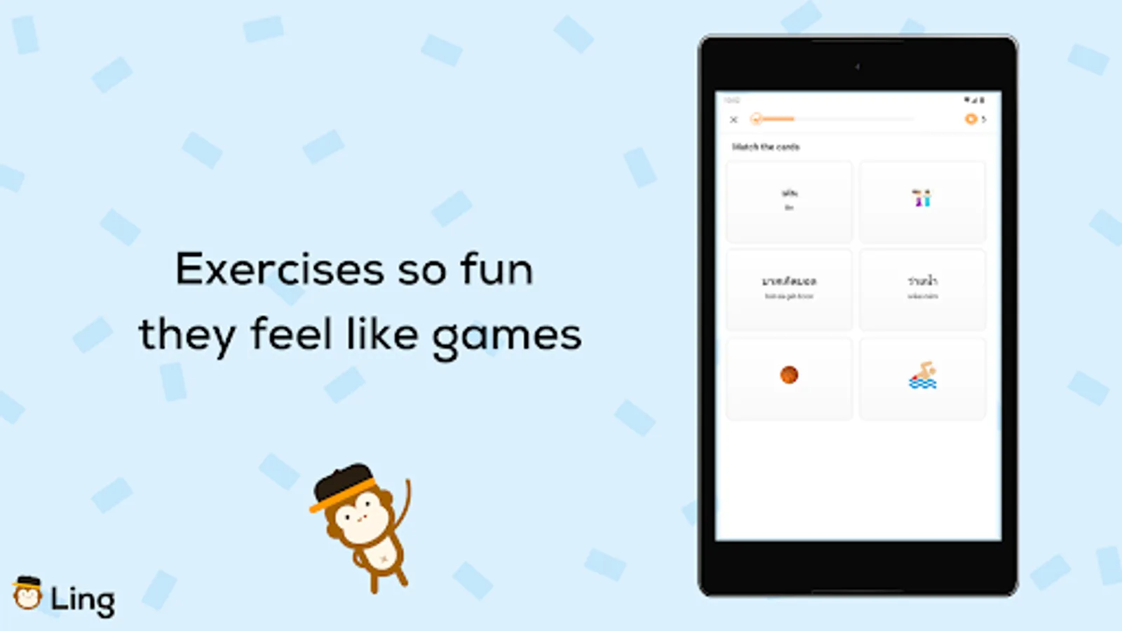 • Ling is fun and has proven results. With our retention-focused learning method, typical language learning exercises feel like games.