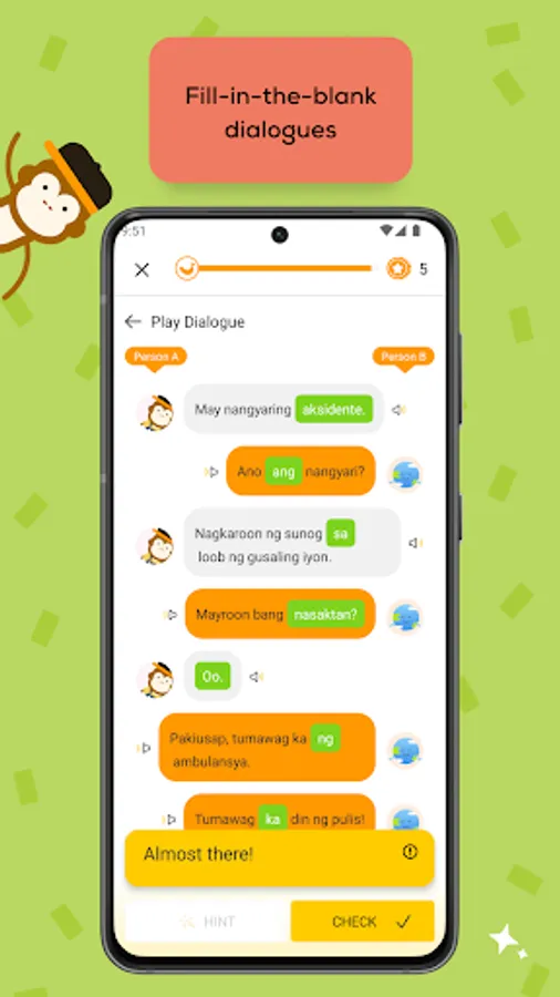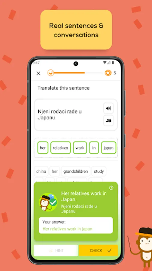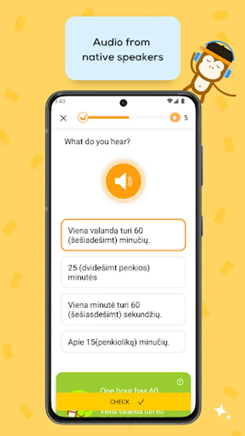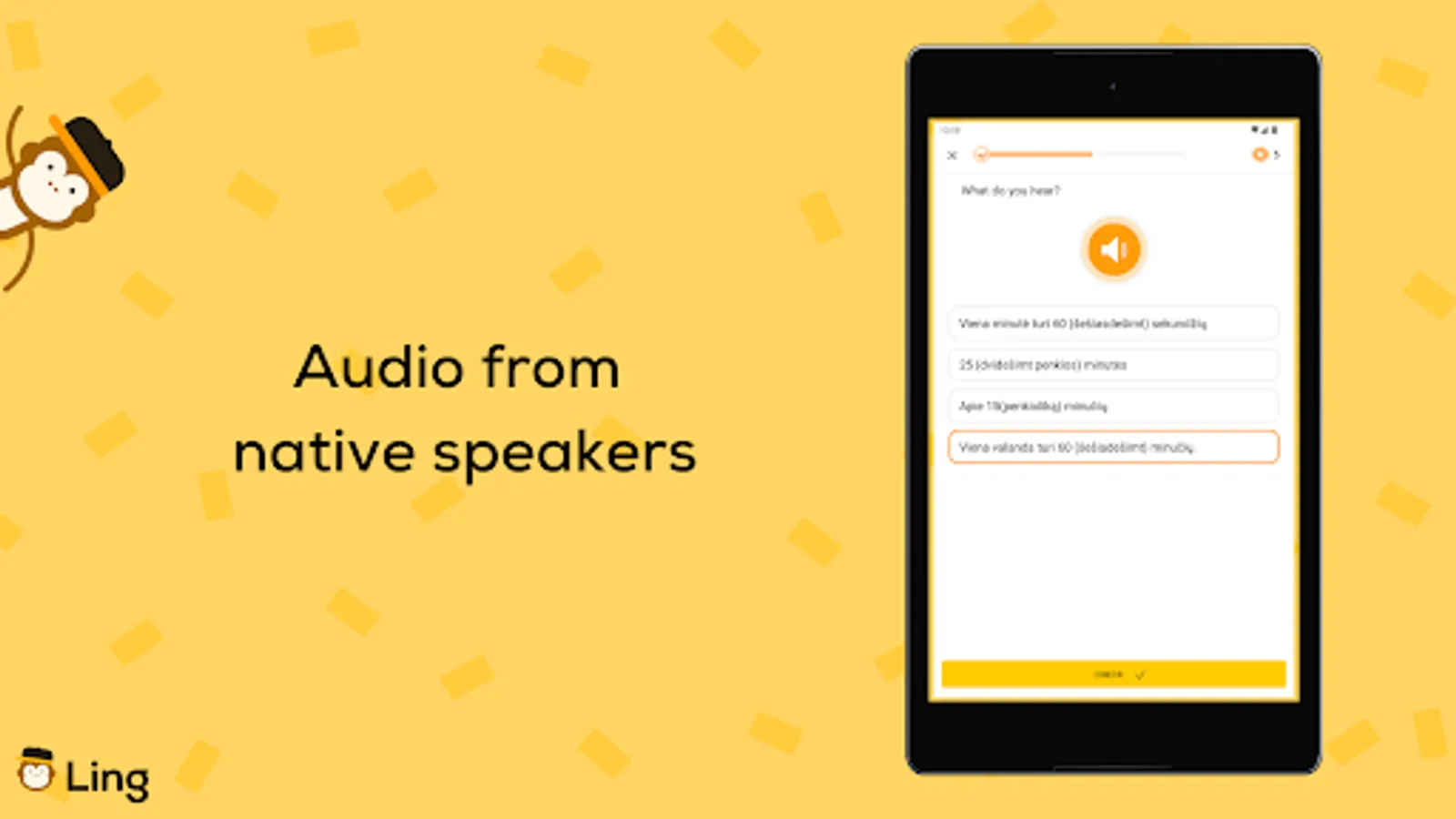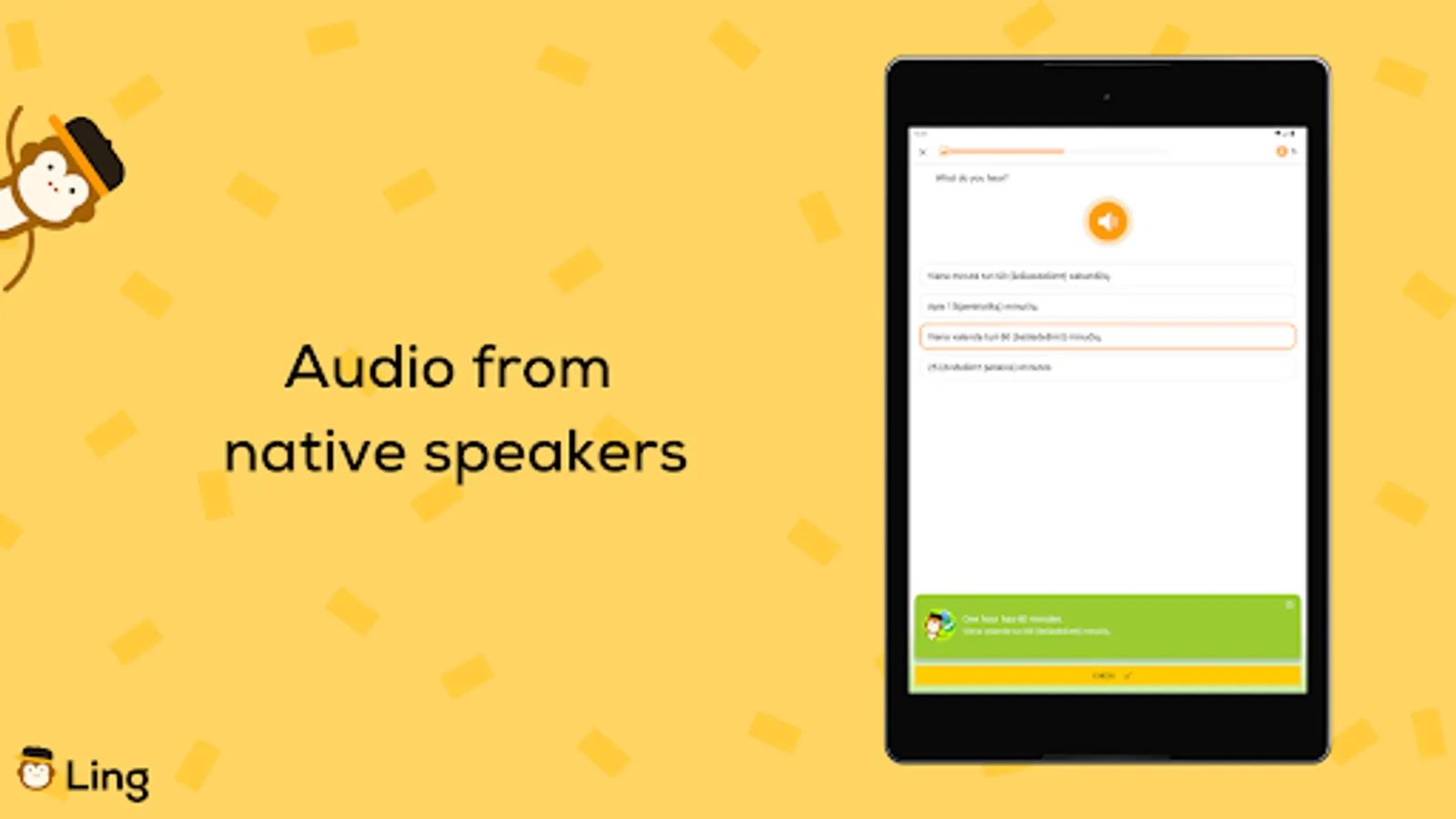 • Ling makes language learning habitual. With our progress tracker and streak feature, you’ll be able to follow your language learning progress every step of the way. Collect enough points and get featured on our leaderboard!