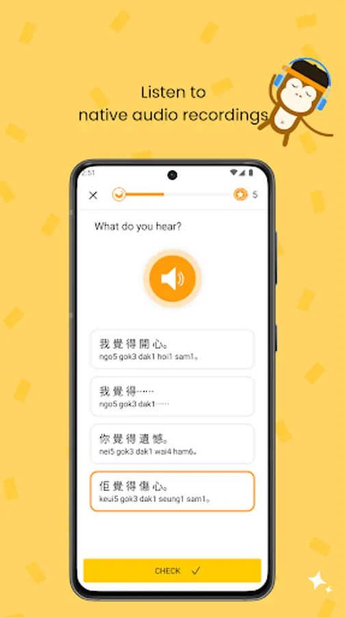Our free Cantonese language learning app is designed to make learning Cantonese as easy and as fun as possible! Using a variety of mini-games and interactive learning techniques, you’ll be able to immerse yourself in the Cantonese language using just your smartphone!