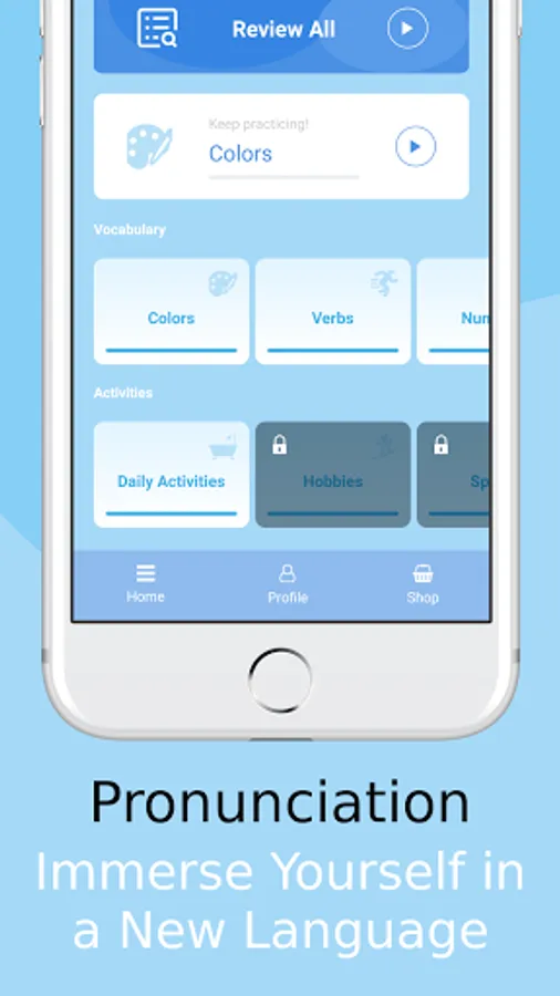 Learn words from over 100 different topics using a variety of different techniques that will help you to remember. From Flash Cards to Listening Games to Quizzes, Vocly will keep you on your toes.