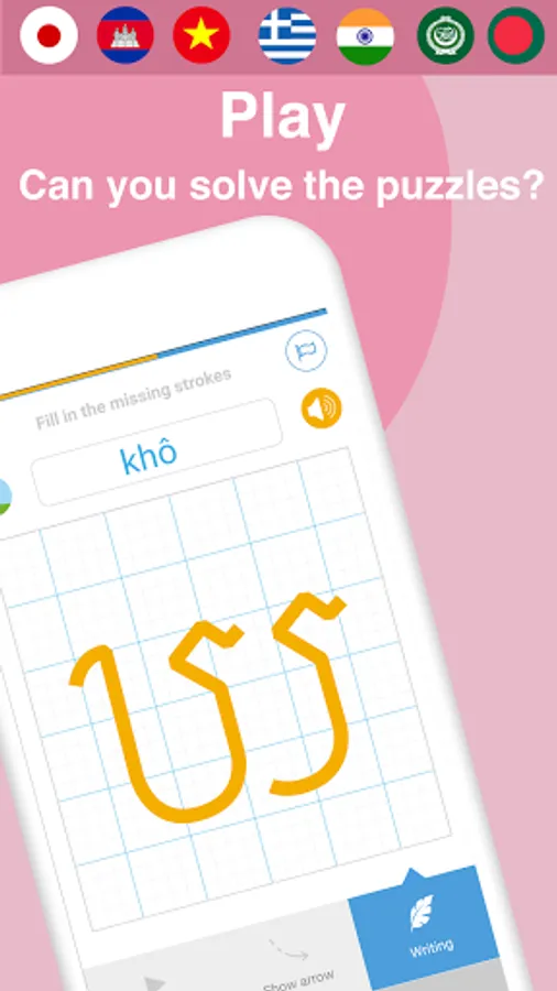 Write Me is designed to make learning Khmer characters as easy and as fun as possible! Using a variety of mini games, you’ll be able to immerse yourself in the Khmer characters using just this mobile application!