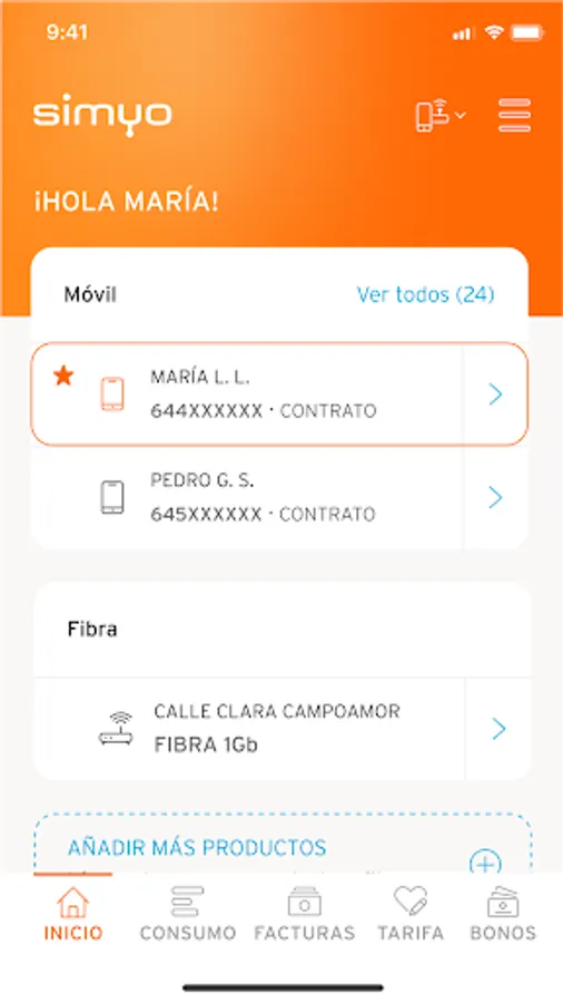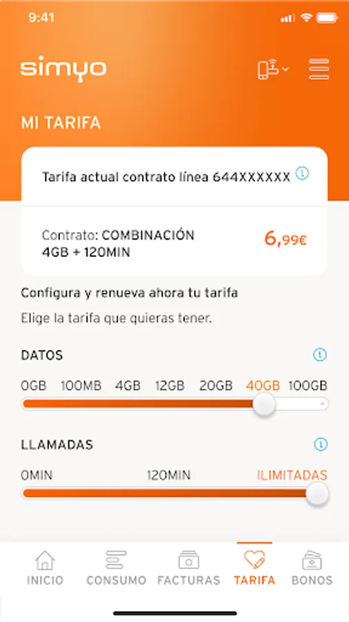 Check your online consumption at a glance. Access to information for the current month or previous months through simple graphs. Makes arrangements with one touch: rate changes, contract bonds, sets limits consumption, recharge your line, consult your bills ... All this and more on your phone or tablet.