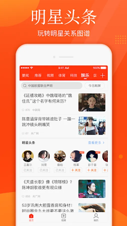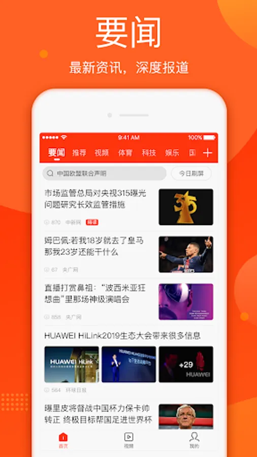 Massive daily updated news content, fastest and most complete Headline News. The first time was informed of domestic and foreign affairs, sports coverage, monetary and financial trends, film and television entertainment events, social, military, science and technology news.