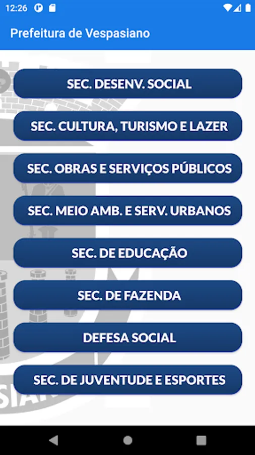 App with the institutional videos of the Vespasiano City Hall, including all public administration departments. With relevant information for society and showing the work done by the city hall to improve the quality of life of the population of Vespasiano