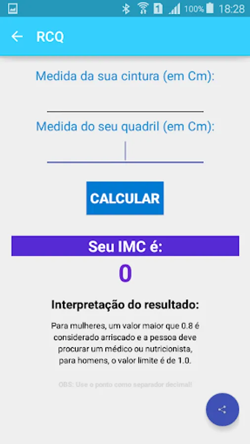 With this simple and intuitive app, you can easily calculate your BMI, your maximum repetitions (RepMax) in weight training exercises, your waist / hip ratio, to know how is your blood pressure and also their aerobic capacity (VO2max.).